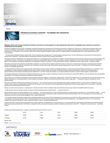 Artykuł Chłodnicze przewozy żywności - europejska sieć spożywcza Robert Przybylski | 2014-05-02 11:02:10 Fotolia Malejące stawki oraz rosnące oczekiwania klientów wymusiły na konkurujących ze sobą operatorach stworzenie europejskiej sieci przewozów żywności w temperaturze kontrolowanej. W połowie ubiegłego roku dwunastu europejskich operatorów logistycznych powołało sieć transportową żywności w segmencie niemrożonym, obejmującą 20 krajów Europy. Sieć nazywa się European Food Network, a jej handlowa oferta pod marką Vivengo funkcjonuje od 1 października. Dwoma głównymi podmiotami porozumienia są Dachser i Raben. Pozostałe to H.P. Therkelsen, Jens Thomsen, Peter Green Chilled, Papp Italia, Bakker Logistik, Brummer Logistik, Galliker Transport&Logistik oraz Liegl. Kooperację wymusili zleceniodawcy. – Ponad połowa przetargów dotyczy całej Europy. Klienci oczekują usług logistycznych na całą Europę od jednego klienta i nie są zainteresowani wyszukiwaniem wykonawców w każdym kraju oddzielnie – stwierdza dyrektor zarządzający Dachser European Food Logistics Alfred Miller. Przewozy żywności w temperaturze kontrolowanej powyżej 0 st. C wymagają tak dużych nakładów, że żaden z uczestników porozumienia nie był w stanie stworzyć paneuropejskiej sieci samodzielnie. Każdy z uczestników ma nadzieje na umocnienie swojej pozycji. Miller zapewnia, że przesyłka z Niemiec najpóźniej w 2-3 dni trafi do Polski lub Czech. Codziennie z Berlina i Hoff wysyłane są transporty dedykowane do magazynów w Polsce i Czechach. – Polska jest szóstym odbiorcą niemieckich towarów spożywczych – przypomina Miller. Wchodząc do European Food Network, Ewald Raben stwierdził, że „dla firmy Fresh Logistics możliwość udziału w silnej sieci nie tylko otwiera drogę do najważniejszego dla Polski partnera handlowego, ale także do całej północnej, zachodniej i południowej Europy. Tworzy także nową perspektywę dla naszych klientów”. I to właśnie oni odniosą największe korzyści ze współpracy operatorów. – Z przynależności do EFN wynika szereg korzyści, wśród których można wymienić: jednolite standardy jakościowe, a także przejrzyste standardy komunikacyjne, np. aplikacje online pozwalające na szybki dostęp do niezbędnych informacji w obrębie Europy. Atutem są również: możliwość realizacji codziennych połączeń z krajami UE oraz zapewnienie bezpieczeństwa przewożonych produktów poparte certyfikatami – wymienia zalety sieci dyrektor ds. Dystrybucji Międzynarodowej w spółce Fresh Logistics Justyna Dobraś. Pani dyrektor podkreśla, że każda firma należąca do EFN zachowuje własne systemy niezbędne do wykonania oferowanych usług (TMS, WMS etc.). Są one ujednolicone pod względem standardów IT oraz połączone specjalnymi kanałami przesyłu danych. Zleceniodawca ma możliwość prześledzenia drogi swojej przesyłki bez względu na lokalizację i drogę tranzytu. Twórcy EFN zapewniają, że w rezultacie klienci otrzymują usługi wyższej jakości: bez spóźnień, strat przewozowych, skróci się także czas dostaw. Z Berlina do południowej Polski towary trafią w ciągu doby. – Transportem lądowym szybciej się nie da – zapewnia Miller. Poczynania Dachsera i Rabena pilnie obserwuje konkurencja. – N ie zauważamy jak do tej pory bezpośredniego wpływu podjętych działań na rynku polskim, ale Dachser to duża, rodzinna firma z ogromnym potencjałem (podobnie jak FM Logistic), wiec czas pokaże w jaki sposób będą one oddziaływać na rynek usług logistycznych w przyszłości – stwierdza dyrektor generalny FM Logistic Piotr Sukiennik. Dodaje, że polski rynek jest jednym z największych w Europie. Z punktu widzenia logistycznego jest ultrakonkurencyjny przez obecność wszystkich głównych graczy. - Każdy próbuje wdrożyć różnego rodzaju rozwiązania które poprawiłyby jego pozycjonowanie – przyznaje Sukiennik. Rynek żywności należy nie tylko do stabilnych, ale i rosnących. – Przewozy żywności są znacznie bardziej odporne na wpływ kryzysu w porównaniu z innymi sektorami rynku – uważa Sukiennik. Przyznaje, że co prawda wzrosty rok do roku spowalniają, są tylko jednocyfrowe, gdy w poprzednich latach były dwucyfrowe, ale mimo wszystko jest to wzrost. Natomiast zdecydowanie rynek zmienia się pod względem marż i spada zyskowność. – Do niedawna bardzo powszechna była zwykła indeksacja stawek czyli coroczna zmiana najczęściej in plus ponieważ to wynikało ze zmiany wskaźników makroekonomicznych. Od 23 lat sytuacja zmieniła się znacząco. Klienci oczekują każdego roku redukcji stawek poprzez optymalizację procesów logistycznych. Tak wygląda dziś rynek i na nim musimy się odnaleźć jako operator logistyczny i jeden z głównych graczy na rynku – podsumowuje Sukiennik. Także twórcy EFN muszą dać sobie radę wśród zmian. Miller zapewnia, że współpraca nie ma przełożenia na inne pola działalności. W dostawach produktów przemysłowych Raben i Dachser pozostaną konkurentami. Dla Rabena to długoterminowa, przemyślana współpraca dwóch największych partnerów w sieci EFN. – Przejęcie nie wchodzi w grę – podkreśla Dobraś. Przewozy produktów spożywczych, napojów i wyrobów tytoniowych w Polsce w tys. ton 2012 2011 2010 2009 2008 Wywóz 5790 5627 5760 4608 3662 Przywóz 5149 4885 4744 3645 3149 Źródło: GUS Źródło: www.businessvoice.pl partnerzy