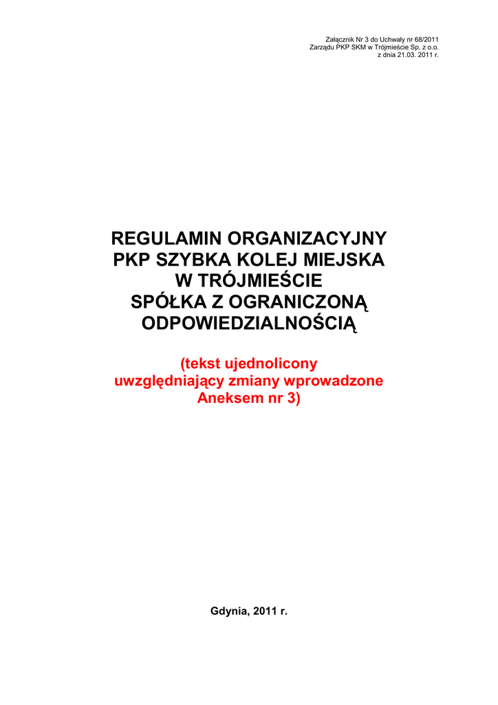 Regulamin Organizacyjny PKP Szybka Kolej Miejska w Trójmieście