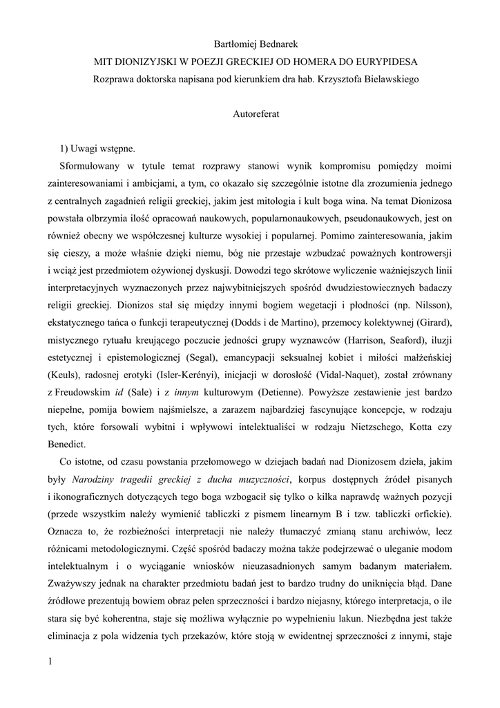 Bartłomiej Bednarek MIT DIONIZYJSKI W POEZJI GRECKIEJ OD