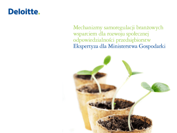 Mechanizmy samoregulacji branżowych wsparciem dla rozwoju społecznej odpowiedzialności przedsiębiorstw Ekspertyza dla Ministerstwa Gospodarki Wprowadzenie Prezentowany materiał stanowi podsumowanie wybranych zagadnień przedstawionych w raporcie przygotowanym przez Deloitte na zlecenie Ministerstwa Gospodarki. Raport ten poświęcony mechanizmom samoregulacji, traktowanym jako wsparcie w rozwoju społecznej odpowiedzialności przedsiębiorstw, stawia sobie za cel gruntowną analizę korzyści oraz możliwości wprowadzenia na polskim rynku inicjatyw branżowych z zakresu CR w trzech branżach: •wydobywczej, •budowlanej oraz •finansowo-ubezpieczeniowej. 2 Mechanizmy samoregulacji branżowych wsparciem dla rozwoju społecznej odpowiedzialności przedsiębiorstw. Ekspertyza dla Ministerstwa Gospodarki Cechy charakterystyczne inicjatyw branżowych •Zrzeszają liczne grono przedstawicieli sektora prywatnego, często o różnej skali prowadzonej działalności. •Powołują organizację, która zajmuje się zarządzaniem inicjatywą. •Tworzą określone narzędzia w celu upowszechniania odpowiedzialnego podejścia do prowadzenia biznesu w ramach branży i poprawy obowiązujących standardów. Narzędzia te obejmują m.in.: kodeksy postępowania, polityki, mierzalne zobowiązania, wskaźniki wraz ze zdefiniowaniem ich docelowych poziomów w danym horyzoncie czasowym, certyfikaty, zasady monitorowania i weryfikowania przestrzegania przyjętych zobowiązań, formy oraz zakres raportowania informacji. •Opracowują plan działań nakierowany na osiągnięcie wyznaczonych celów. •Tworzą platformy do dzielenia się doświadczeniami w ramach inicjatywy. •Wypracowują podręczniki w celu wsparcia przedsiębiorstw w osiąganiu zobowiązań. •Opisują metody dialogu z otoczeniem, w celu uwzględniania opinii społecznej w toku i w związku z prowadzoną działalnością. 3 Mechanizmy samoregulacji branżowych wsparciem dla rozwoju społecznej odpowiedzialności przedsiębiorstw. Ekspertyza dla Ministerstwa Gospodarki Korzyści z przystąpienia do inicjatywy branżowej z zakresu CR 1. Organizacje, które zarządzają inicjatywami tworzą forum do dialogu dot. trudnych i wrażliwych społecznie tematów. 2. W ramach inicjatyw tworzone i udostępniane są narzędzia, których samodzielne opracowywanie jest czasochłonne. 3. Inicjatywy pomagają firmom w adresowaniu kluczowych problemów społecznych i środowiskowych, które mają wpływ na ich biznes. 4. Zaangażowanie interesariuszy i prowadzenie dialogu z wybranymi grupami jest łatwiejsze i bardziej efektywne, jeśli jest wykonywane w ramach inicjatywy branżowej. 5. Inicjatywy wyznaczają standardy dotyczące tego, co jest akceptowalne w działaniach firm. Przystępując do nich firmy pokazują swoją aspirację do bycia liderem z zakresu CR. 6. Przystępując do inicjatywy samoregulującej uzyskuje się często dostęp do wspólnego dla branży systemu monitorowania, weryfikacji, certyfikacji czy też raportowania. 7. Dzięki członkostwu w inicjatywnie branżowej firmy mogą znacznie efektywniej niż samodzielnie budować zaufanie konsumentów i zarządzać ryzykiem reputacyjnym. Źródło: „Guide to industry initiatives in Corporate Social Responsibility”, Ethical Corporation, 2009 4 Mechanizmy samoregulacji branżowych wsparciem dla rozwoju społecznej odpowiedzialności przedsiębiorstw. Ekspertyza dla Ministerstwa Gospodarki Porównanie funkcjonujących na świecie inicjatyw samoregulacyjnych z zakresu CR Szeroki zakres tematyczny Raportowanie Wskaźniki Wspólna baza wiedzy Weryfikacja Zasady Initiative for Responsible Mining Assurance International Council on Mining and Metals Extractive Industries Transparency Initiative Voluntary Principles on Security and Human Rights Automotive Industry Action Group The Equator Principles Responsible Care Cement Sustainability Initiative •Podstawą inicjatyw samoregulacyjnych są pewnego rodzaju zasady z zakresu zrównoważonego rozwoju / odpowiedzialnego biznesu, które wszyscy członkowie powinni wdrożyć / przestrzegać. •Zdecydowana większość światowych, powszechnie uznawanych inicjatyw samoregulacyjnych z zakresu CR decyduje się na wprowadzenie obowiązku raportowania postępów we wdrażaniu założeń inicjatywy. Raportowanie przyjmuje zazwyczaj jedną z postaci – raportowania na rzecz organizacji zarządzającej inicjatywą lub na rzecz opinii publicznej. •Ambitne inicjatywy coraz częściej decydują się na wprowadzenie niezależnej weryfikacji raportowanych informacji. •Globalnie obserwowanym trendem jest odchodzenie od inicjatyw koncentrujących się na jednym zagadnieniu na rzecz inicjatyw o szerokim spektrum podejmowanych tematów. 5 Mechanizmy samoregulacji branżowych wsparciem dla rozwoju społecznej odpowiedzialności przedsiębiorstw. Ekspertyza dla Ministerstwa Gospodarki Rekomendowany zakres samoregulacji z zakresu CR dla branży wydobywczej Obszary z zakresu odpowiedzialnego biznesu będące aktualnie przedmiotem zainteresowania firm (skala 1-5) Przestrzeganie praw człowieka 4,44 Zakres samoregulacji •Odpowiedzialność za łańcuch dostaw •BHP Ograniczanie oddziaływania środowiskowego 4,46 •Odpowiedzialne wysiedlanie lokalnej społeczności •Prowadzenie konsultacji społecznych Odpowiedzialne podejście do transportu surowców 4,67 •Ochrona bioróżnorodności •Ograniczanie emisji do powietrza Zarządzanie ryzykiem 4,67 Przeciwdziałanie korupcji 4,78 •Odpowiedzialne zarządzanie odpadami •Ochrona zasobów wodnych •Etyka prowadzenia działalności Odpowiedzialne podejście do wydobycia i obróbki 4,89 •Kompleksowe podejście do zarządzania ryzykiem •Współpraca na rzecz zrównoważonego rozwoju branży Troska o bezpieczeństwo w miejscu pracy 5,00 •Odpowiedzialne wydobycie 6 Mechanizmy samoregulacji branżowych wsparciem dla rozwoju społecznej odpowiedzialności przedsiębiorstw. Ekspertyza dla Ministerstwa Go