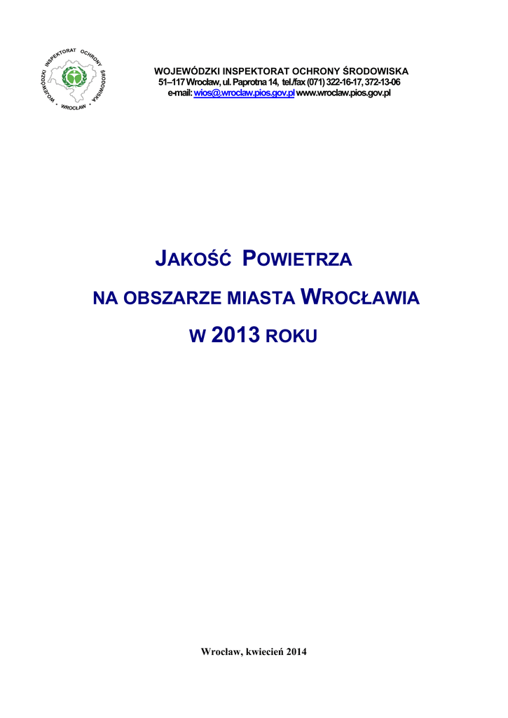 WOJEWÓDZKI INSPEKTORAT OCHRONY ŚRODOWISKA 51–117 Wrocław, ul. Paprotna 14, tel./fax (071) 322-16-17, 372-13-06 e-mail: [email protected] www.wroclaw.pios.gov.pl JAKOŚĆ POWIETRZA NA OBSZARZE MIASTA WROCŁAWIA W 2013 ROKU Wrocław, kwiecień 2014 Badania monitoringowe jakości środowiska realizowane przez Wojewódzki Inspektorat Ochrony Środowiska na terenie Wrocławia są współfinansowane przez: Wojewódzki Fundusz Ochrony Środowiska i Gospodarki Wodnej we Wrocławiu Materiały zebrano i opracowano w Wydziale Monitoringu Środowiska Wojewódzkiego Inspektoratu Ochrony Środowiska we Wrocławiu: Agnieszka Mikołajczyk Świętosława Żyniewicz Oceny jakości powietrza oraz aktualne wyniki pomiarów z wojewódzkiej sieci monitoringu powietrza dostępne są na stronie internetowej WIOŚ we Wrocławiu: www.wroclaw.pios.gov.pl Jakość powietrza na obszarze miasta Wrocławia w 2013 r. I. 2 WSTĘP Głównym celem działań w zakresie ochrony powietrza jest utrzymanie jakości powietrza w rejonach, gdzie jest ona dobra i jej poprawa w pozostałych rejonach. Wymaga to prowadzenia stałej oceny jakości powietrza na całym terytorium kraju w sposób ujednolicony, porównywalny do metod stosowanych w krajach członkowskich UE. Monitoring jakości powietrza na terenie miasta Wrocławia realizowany jest przez Wojewódzki Inspektorat Ochrony Środowiska we Wrocławiu w ramach dolnośląskiego systemu monitoringu jakości powietrza, będącego elementem sieci krajowej Państwowego Monitoringu Środowiska (PMŚ). Celem monitoringu jest uzyskanie informacji o poziomach substancji w powietrzu w odniesieniu do standardów jakości powietrza, identyfikacja obszarów wymagających poprawy jakości powietrza, a następnie monitorowanie skuteczności programów naprawczych. Zagadnienia związane z badaniami i oceną jakości powietrza reguluje ustawa Prawo ochrony środowiska z dnia 27 kwietnia 2001 roku (Dz.U. 2008.25.150 z późn. zm.), która odwołuje się do szczegółowych aktów wykonawczych. Są to głównie: Rozporządzenie Ministra Środowiska z dnia 24 sierpnia 2012 r. w sprawie poziomów niektórych substancji w powietrzu (Dz.U.2012.1031), Rozporządzenie Ministra Środowiska z dnia 13 września 2012 r. w sprawie dokonywania oceny poziomów substancji w powietrzu (Dz.U.2012.1032), W opracowaniu „Jakość powietrza na obszarze miasta Wrocławia w 2013 roku” znajdują się zestawienia parametrów statystycznych wyliczonych na podstawie wyników monitoringu jakości powietrza realizowanego w 2013 r. W celu określenia zmian stężeń w wieloleciu poziomy stężeń średniorocznych z 2013 r. zestawiono z danymi z lat poprzednich. Dodatkowo do oceny jakości powietrza wykorzystano wyniki matematycznego modelowania jakości powietrza umożliwiające interpretację danych ze stacji pomiarowych z uwzględnieniem geograficznego rozkładu stężeń. II. MONITORING JAKOŚCI POWIETRZA WE WROCŁAWIU Monitoring jakości powietrza we Wrocławiu w 2013 r. prowadzony był przez Wojewódzki Inspektorat Ochrony Środowiska za pomocą stacji pomiarowych zlokalizowanych: - przy ul. Wybrzeże J. Conrada-Korzeniowskiego (stacja „tła miejskiego” – osiedle Kleczków), - przy skrzyżowaniu al. Wiśniowej z ul. Powstańców Śl. (stacja „komunikacyjna”), - przy ul. Orzechowej (pobornik pyłu PM10 – osiedle Gaj), - przy ul. Na Grobli (pobornik pyłu PM2.5 – osiedle Przedmieście Oławskie). W ocenie uwzględniono następujące substancje: dwutlenek siarki, dwutlenek azotu, benzen, ozon, pył zawieszony PM10, pył zawieszony PM2,5 oraz oznaczane w pyle PM10: ołów, arsen, kadm, nikiel i wielopierścieniowe węglowodory aromatyczne (WWA), w tym benzo(a)piren. Tabela 1. Wykaz i zakres pomiarowy stacji monitoringu jakości powietrza we Wrocławiu w 2013 r. Lp. Nazwa stacji SO2 Wrocław, Wyb.J.ConradaKorzeniowskiego (os. Kleczków) Wrocław, ul. Na Grobli 2. (os.Przedmieście Oławskie) Wrocław, al. Wiśniowa 3. (os. Powstańców Śląskich) 4. Wrocław, ul. Orzechowa (os. Gaj) 1. Substancje, podstawowy czas uśredniania \1 zanieczyszczenia gazowe zanieczyszczenia pyłowe Ołów Arsen Kadm Nikiel WWA/ NO2 Benzen Ozon PM10 PM2.5 (Pb) (As) (Cd) (Ni) BaP 1 1 1 1 24 – i i i i i – – – – – 24 – – – – – – 1 – – – 1 – – – – – – – – – 24 – i i i i i Oznaczenia czasu uśredniania: 1 – dla pomiarów stężeń 1-godzinnych (pomiary automatyczne) 24 – dla pomiarów stężeń 24 godzinnych (pomiary manualne) i – dla pomiarów z innym czasem poboru prób - pomiary ołowiu, kadmu, niklu, arsenu i WWA w pyle PM10, uśredniane z prób tygodniowych (pomiary manualne) 1/ Wojewódzki Inspektorat Ochrony Środowiska we Wrocławiu Jakość powietrza na obszarze miasta Wrocławia w 2013 r. zdjęcie: stacja pomiarowa „tła miejskiego” przy ul. Wyb. J.Conrada-Korzeniowskiego we Wrocławiu 3 zdjęcie: stacja pomiarowa „tła miejskiego” przy ul. Na Grobli we Wrocławiu – pobornik pyłu PM2,5 III. JAKOŚĆ POWIETRZA WE WROCŁAWIU Badania i oceny jakości powietrza realizowane na terenie Wrocławia wykazały: poziom zanieczyszczenia powietrza dwutlenkiem siarki, benzenem, ozonem, tlenkiem węgla i metalami ciężkimi (ołowiem, arsenem, kadmem, niklem) poniżej dopuszczalnych norm, wysoki poziom zapylenia powietrza – ponadnormatywne wartości stężeń średniodobowych pyłu zawieszonego PM10, ze zwiększoną częstością przekroczeń w sezonie grzewczym oraz ponadnormatywne stężenie średnioroczne pyłu zawieszonego PM2,5, przekroczenie pułapu stężenia ekspozycji pyłu PM2,5 – poziomu dopuszczalnego określonego dla aglomeracji i miast >100 000 mieszkańców, wysoki poziom wielopierścieniowych węglowodorów aromatycznych (WWA) w powietrzu – przekroczenie poziomu docelowego benzo(a)pirenu, wysoki poziom dwutlenku azotu rejestrowany przez stację „komunikacyjną” – przekroczenie dopuszczalnego poziomu średniorocznego NO2, znacznie wyższy pozi