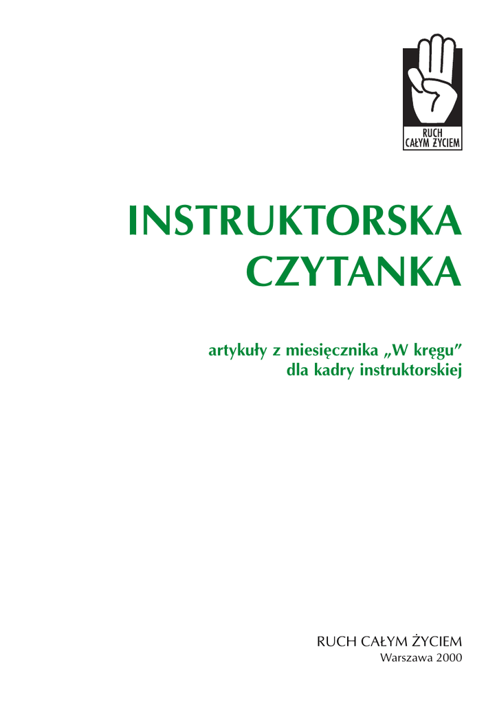 INSTRUKTORSKA CZYTANKA artyku³y z miesiêcznika W krêgu dla kadry instruktorskiej RUCH CA£YM ¯YCIEM Warszawa 2000 Zwi¹zek Harcerstwa Polskiego RUCH CA£YM ¯YCIEM ul. Raszyñska 22 a 02-026 Warszawa tel.: 0-602 349 653 e-mail: [email protected] Internet: www.calymzyciem.org.pl ISBN 83-910438-8-6 © Copyright by autorzy artyku³ów Wydanie pierwsze Warszawa 2000 Redakcja: hm. Grzegorz Ca³ek Druk: Wydawnictwo WING, £ód Kilka s³ów wstêpu Miesiêcznik dla kadry instruktorskiej Zwi¹zku Harcerstwa Polskiego W krêgu by³ wydawany przez Komendê Chor¹gwi Sto³ecznej ZHP od grudnia 1997 roku do lutego 1999 roku. Przez niespe³na pó³tora roku zyska³ olbrzymi¹ sympatiê instruktorów ZHP, o czym dobitnie mo¿e wiadczyæ fakt, ¿e wielkoæ jego prenumeraty przewy¿sza³a prenumeratê wszystkich gazet centralnych razem wziêtych! Co przyczyni³o siê do sukcesu W krêgu? Mylê, ¿e przede wszystkim profil gazety, która by³a adresowana do instruktorów pe³ni¹cych funkcje w harcerskich komendach. Dru¿ynowi maj¹ przecie¿ swoje kwartalniki metodyczne, Czuwaj za to miesiêcznik ogólnoinstruktorski, który porusza wa¿ne problemy Zwi¹zku, ale rzadko mo¿na w nim znaleæ konkretne pomys³y, propozycje, rozwi¹zania metodyczne dla namiestników, kszta³ceniowców czy hufcowych. W³anie tê lukê zape³ni³ miesiêcznik W krêgu. Kiedy piszê o sukcesie naszej gazety, muszê (niezbyt skromnie) zauwa¿yæ, ¿e by³a ona oceniana pozytywnie tak¿e za wysoki poziom merytoryczny. To zawsze by³o dla mnie jako redaktora naczelnego szczególnie wa¿ne i dawa³o poczucie satysfakcji, ¿e takie elementy jak: dba³oæ o dobór tematów i sposób ich ujêcia oraz dowiadczenie autorów i doskona³a znajomoæ zagadnieñ metodycznych, zyska³y uznanie czytelników. Niestety, z ró¿nych przyczyn W krêgu przesta³o siê ukazywaæ. Jednak ca³y czas otrzymujê pytania typu: co dalej?, sk¹d mo¿na wzi¹æ artyku³ na temat..., czy masz jeszcze numer... itd. Aby teksty z W krêgu mog³y nadal s³u¿yæ instruktorom harcerskich komend, powsta³ pomys³ wydania zbioru wybranych artyku³ów. I je¿eli czytasz te s³owa, to znaczy, ¿e pomys³ uda³o siê zrealizowaæ. ¯yczê mi³ej lektury! hm. Grzegorz Ca³ek (by³y) redaktor naczelny W krêgu SPIS ARTYKU£ÓW W KRÊGU KOMENDANTÓW Hufiec ze strategi¹ ............................................................................................................................... 6 Hufiec ze strategi¹ (cz. 2) .................................................................................................................. 12 Jak dobry hufcowy powinien dbaæ o swoj¹ komendê ....................................................................... 15 K¥CIK NAMIESTNIKA Czym jest namiestnictwo? ................................................................................................................. 18 Nim okrelimy cele ............................................................................................................................ 21 Jak okrelaæ cele? .............................................................................................................................. 23 Jak okrelaæ cele? (cz. 2) ................................................................................................................... 25 Jak dobieraæ zadania do celów? ........................................................................................................ 28 Namiestnictwo a szczep ..................................................................................................................... 30 Jak dostosowywaæ propozycje z góry do potrzeb rodowiska ....................................................... 32 Namiestnictwo a KSI ......................................................................................................................... 36 Formy pracy namiestnika z dru¿ynowym .......................................................................................... 38 Formy pracy namiestnika z dru¿ynowymi ......................................................................................... 40 Formy pracy namiestnika z dru¿ynami .............................................................................................. 42 KSZTA£CIMY Organizujemy kurs dru¿ynowych ...................................................................................................... 45 Koñcz waæ... kurs dru¿ynowych ...................................................................................................... 49 Koñcz waæ... kurs dru¿ynowych ...................................................................................................... 51 Treci kszta³cenia kursu dru¿ynowych zuchowych ........................................................................... 52 Treci kszta³cenia kursu dru¿ynowych harcerskich ........................................................................... 54 Treci kszta³cenia kursu dru¿ynowych starszoharcerskich ................................................................ 57 Dobra forma ....................................................................................................................................... 59 Wspó³czesna sytuacja harcerstwa w kszta³ceniu ............................................................................... 61 ZDOBYWAMY STOPNIE Jak pracuj¹ komisje stopni? ............................................................................................................... 64 Zadania komisji stopni instruktorskich hufca ................................................................................... 66 Jak sprawdzaæ instruktorskie postawy ............................................................................................... 68 Jak dbaæ o atmosferê w komisji stopni instruktorskich ..................................................................... 70 RÓ¯NE We w³aciwym czasie .....................................