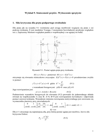 Wykład 9. Stateczność prętów. Wyboczenie sprężyste 1. Siła