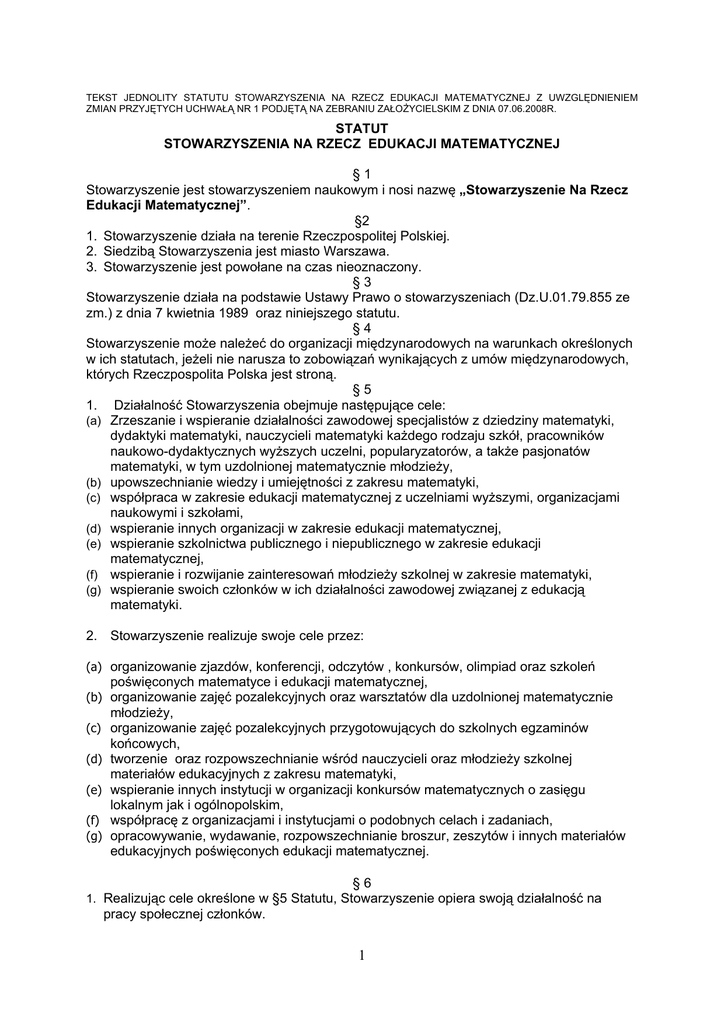 Statut - Stowarzyszenie na rzecz Edukacji Matematycznej