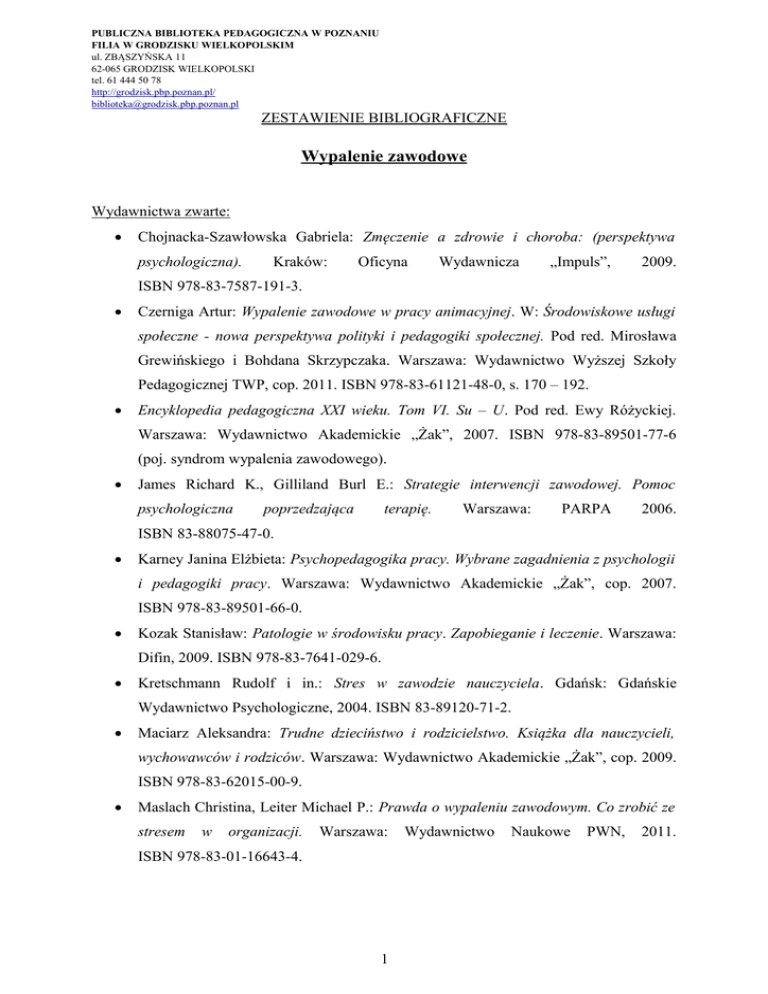 Wypalenie zawodowe Zestawienie bibliograficzne