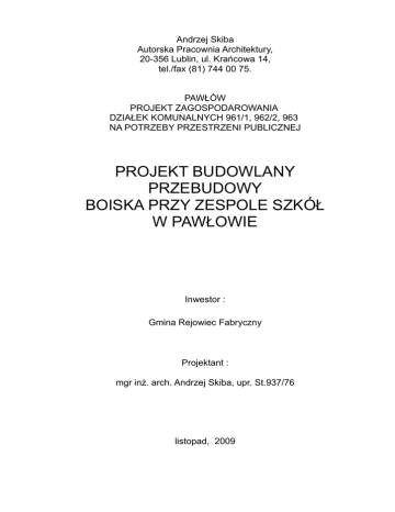 projekt budowlany przebudowy boiska przy zespole szkół w pawłowie