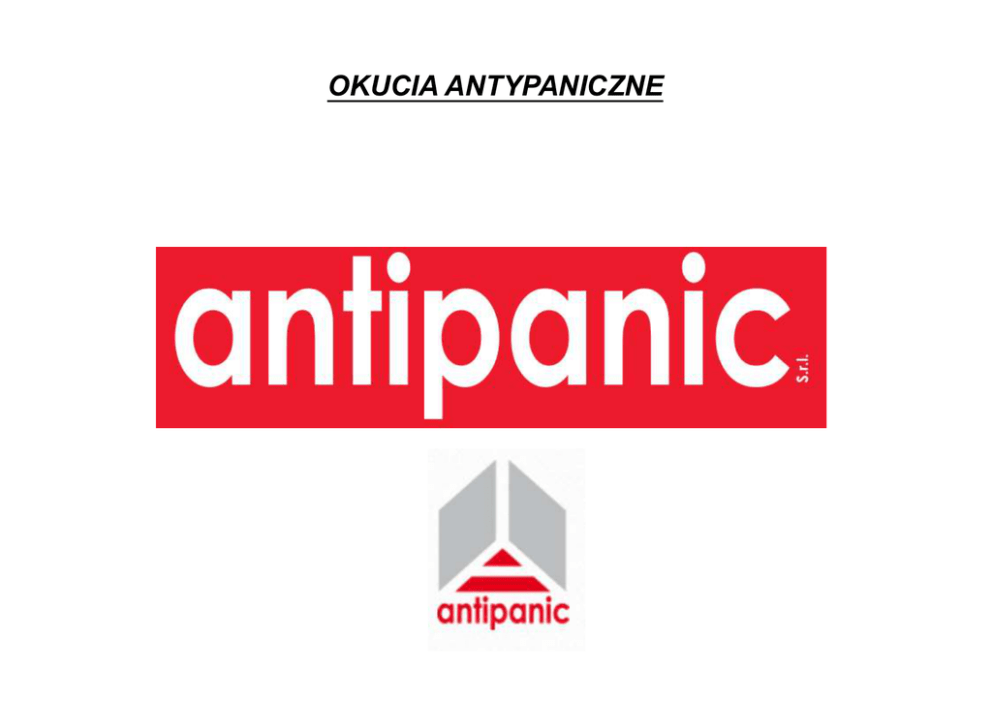 OKUCIA ANTYPANICZNE CERTYFIKATY Certyfikat zgodny z normą PN-EN 1125:2009 Okucia budowlane – Zamknięcia przeciwpaniczne do wyjść uruchamiane prętem poziomym, przeznaczone do stosowania na drogach ewakuacyjnych Certyfikat nr 0425-CPR-807 (Norma EN 1125:2008) KLASYFIKACJA ANTYPANIKA MODULO ORAZ UNICO 1-KATEGORIA UŻYTKOWANIA- KLASA 3 WYSOKA CZĘSTOTLIWOŚĆ UŻYTKOWANIA( BUDYNKI UŻYTECZNOŚCI PUBLICZNEJ) 2-TRWAŁOŚĆ-KLASA 7- 200.000 CYKLI 3-CIĘŻAR DRZWI-KLASA 7- DRZWI POWYŻEJ 200 KG 4-ODPORNOŚĆ OGNIOWA-KLASA B- ODPOWIEDNIE DO STOSOWANIA W DRZWIACH PRZECIWPOŻAROWYCH ORAZ DYMOSZCZELNYCH ( WG. NORMY EN 1634-1) 5- BEZPIECZEŃSTWO-KLASA 1- BEZPIECZNE KLASA NAJWYŻSZA 6-ODPORNOŚĆ NA KOROZJĘ- KLASA 4- BARDZO WYSOKA ODPORNOŚĆ 7-ZABEZPIECZENIE- KLASA 2- PODSTAWOWA 8-WYSTAWANIE DRĄŻKA/LISTWY-KLASA 2- WYSTAWANIE DO 100MM (STANDARDOWE) 9-RODZAJ URUCHAMIANIA- KLASA B- URUCHAMIANIE LISTWĄ NACISKOWĄ 10-MIEJSCE APLIKACJI- KLASA A- DRZWI JEDNO LUB DWU SKRZYDŁOWE, SKRZYDŁO CZYNNE LUB BIERNE RODZAJE OKUĆ ANTYPANICZNYCH ANTYPANIK STANDARDOWY,,MODULO” RODZAJE OKUĆ ANTYPANICZNYCH ANTYPANIK TYPU ,,UNICO” DOPASOWANIE OKUCIA ANTYPANICZNEGO ,,UNICO” DOPASOWANIE OKUCIA ANTYPANICZNEGO ,,UNICO” RODZAJE OKUĆ ANTYPANICZNYCH ANTYPANIK TYPU ,,PUSH-BAR” RODZAJE OKUĆ ANTYPANICZNYCH ANTYPANIK WPUSZCZANY OKUCIE ANTYPANICZNE WYKONANE W CAŁOŚCI ZE STALI NIERDZEWNEJ AISI316 DRZWI JEDNO SKRZYDŁOWE-KONFIGURACJA NA PRZYKŁADZIA ANTYPANIKA MODULO DRZWI DWU SKRZYDŁOWE KONFIGURACJA NA PRZYKŁADZIE ANTYPANIKA MODULO RODZAJE RYGLOWAŃ PIONOWYCH RYGLOWANIE GÓRA/DÓŁ RYGLOWANIE BOCZNE KLAMKA ORAZ GAŁKA ZEWNĘTRZNA KLAMKA ELEKTRYCZNA ZESTAW ANTYPANICZNY Z WBUDOWANYM ELEKTROZACZEPEM DRĄŻEK DLA ANTYPANIKA MODULO DOSTĘPNA KOLORYSTYKA NA PRZYKŁADZIE OKUCIA ANTYPANICZNEGO ,,PUSH-BAR” DOSTĘPNA KOLORYSTYKA NA PRZYKŁADZIE OKUCIA ANTYPANICZNEGO ,,PUSH-BAR”