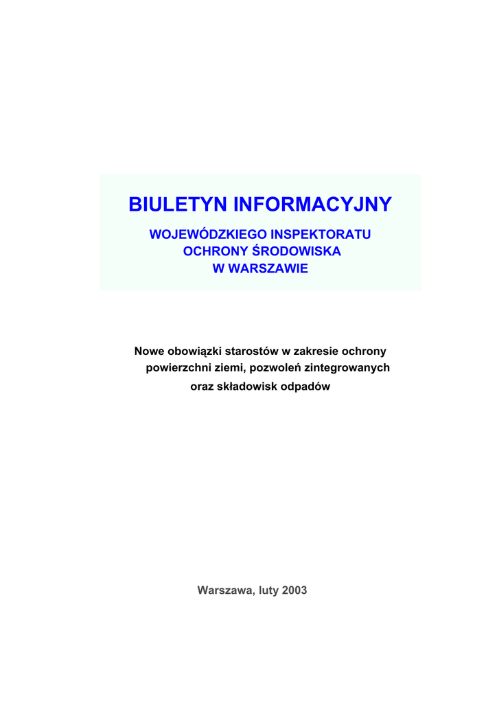 Biuletyn Informacyjny WIOŚ w Warszawie Nowe obowiązki