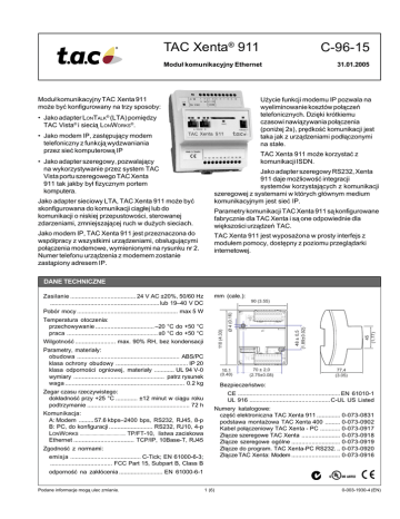 Jako modem IP, TAC Xenta 911 jest przeznaczona do
