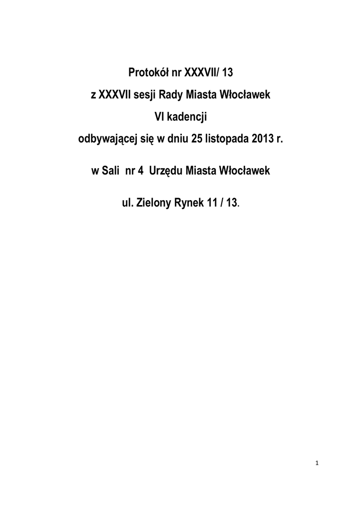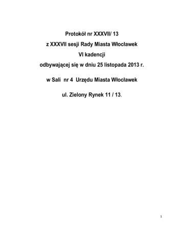 Projekt protokołu nr XXXVII/13 z XXXVII sesji Rady Miasta