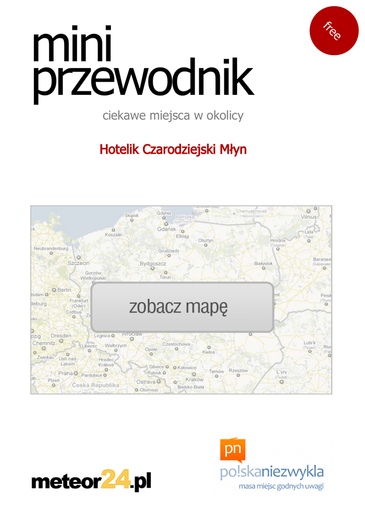ciekawe miejsca w okolicy Hotelik Czarodziejski Młyn e fre mini przewodnik 2 Na mapie: A Radków : Budynki dawnego browaru Browar w Radkowie został wybudowany w latach 1905-1906 przez Carla Nietche. W 1939 r. browar odkupił piwowar z Gdańska Leonhard Waas, który pozostawał jego właścicielem do końca wojny. Po wojnie browar przeszedł w ręce Skarbu Państwa. Browar w latach największej świetności produkował nawet do 60 tysięcy hektolitrów piwa rocznie. Zamknięto go w 1997 roku. Od tego czasu stoi opuszczony i niszczeje. Podobno istniał pomysł reaktywacji browaru, ale inwestor wycofał się z realizacji. Miejsce zaproponował: iwmali Na mapie: D Radków: Ratusz (1545) Ratusz (1545, odbudowany po pożarze 1852) Na mapie: C Radków: Fragmenty murów obronnych (XV w.) Fragmenty murów obronnych (XV w.) Na mapie: B Radków: Kościół św. Doroty (1570-1588) Kościół św. Doroty (1570-1588) Radków: Zabytkowa zabudowa rynku (XVI, XVII w.) Zabytkowa zabudowa rynku (XVI, XVII w.) www.polskaniezwykla.pl Na mapie: E 3 Na mapie: F Radków: Zalew Radkowski Na mapie: H Sztuczny zbiornik w Radkowie jest atrakcją, zarówno dla mieszkańców miasta, jak i gości przebywających w Górach Stołowych. Powstał on w latach 70. ubiegłego wieku, gdy wybudowano zaporę na Potoku Czerwonogórskim (czes. Červenohorskm Potoku). Zalew ma około kilometra długości i trzysta metrów szerokości. Teren wokół zalewu i sam zalew pełnią funkcje rekreacyjne. Wybudowano tam domki kempingowe i restaurację, działają wypożyczalnia sprzętu wodnego oraz odkryty basen. Miejsce zaproponował: iwmali Góry Stołowe: Baszty Skalne Zespół filarów skalnych, wysokich nawet na 40 metrów, położonych przy Szosie Stu Zakrętów. Pod wpływem działania erozji, skały nabrały ciekawych kształtów, są tutaj m.in. baszty, maczugi, ambony, słupy, grzyby. Aby zwiedzić to miejsce najlepiej zostawić samochód w wyznaczonym parkingu (tuż przy trasie do Skalnych Grzybów) następnie pieszo kierować się drogą Stu Zakrętów w kierunku Radkowa Miejsce zaproponował: marekpic Na mapie: I Góry Stołowe: Radkowskie Skały Na mapie: G Góry Stołowe: Skalne Grzyby Bardzo ciekawa grupa skał, położona pomiędzy Batorowem a Karłowem. Na przestrzeni wieków skały te, w wyniku działań sił natury czyli wody i wiatru, nabrały fantazyjnych kształtów do złudzenia przypominających grzyby. Niektóre skały posiadają swoje nazwy, jak np. Dwa Borowiki, Prawdziwek. Miejsce zaproponował: marekpic www.polskaniezwykla.pl Grupa jednych ze starszych skał w Parku Narodowym Gór Stołowych. Zajmują powierzchnię ok 2 km, ze względu na potężne filary i urok miejsca. Są to jedne z atrakcyjniejszych i widowiskowych form skalnych w regionie. Aby dotrzeć do tego miejsca trzeba zostawić samochód w wyznaczonym miejscu przy Drodze Stu Zakrętów (najlepiej na parkingu przy trasie do Skalnych Grzybów), następnie skierować się (pieszo) Drogą Stu zakrętów w kierunku Radkowa. Grupa skał znajduje się w pobliżu Baszt Skalnych. Miejsce zaproponował: marekpic 4 jedno z najatrakcyjniejszych widokowo miejsc w polskich górach! Na szczyt prowadzi ponad 600 stopni wykutych w skale. Wykonał je Franz Pabel, sołtys Karłowa leżącego u stóp góry. Był pierwszym, który docenił atrakcyjność krajobrazu Gór Stołowych. W swojej gospodzie przyjmował pierwszych turystów, prowadził ich przygotowanymi ścieżkami na szczyt Szczelińca. Dotarł tutaj nawet wniesiony w lektyce król Prus Fryderyk Wilhelm II. Franz Pabel w 1813 r. objął z królewskiego nadania funkcję pierwszego w Europie przewodnika turystycznego. Wstęp na Szczeliniec położony w Parku Narodowym Gór Stołowych jest płatny i możliwy od maja do października (w godz. 9.00-18.00). Na szczycie wędruje się wzdłuż ustalonej trasy. Nie wolno z niej zbaczać, podobnie jak nie wolno zostawiać rytych w piaskowcu pamiątkowych inskrypcji w rodzaju: tu byłem. Nieważne, że możemy znaleźć tylko z pozoru godne naśladownictwa wzorce, które zostawiano w przeszłości. Na przykład Johann Wolfgang Goethe w 1790 r. podziwiał piękne widoki z najwyższej skałki zwanej Fotelem Pradziada i zostawił ryty w skale ślad swojej obecności. Jedyne wejście na Szczeliniec Wielki prowadzi żółtym szlakiem turystycznym. Najczęściej szczyt jest zdobywany od strony Karłowa. Na podejście należy rezerwować ok. 45 min. Na mapie: J Ratno Dolne: Zamek Renesansowy zamek (XIV w., przebudowany XVI w., odbudowany po pożarze XVII w., rozbudowany 1854-1890) Na mapie: L Na mapie: K Góry Stołowe: Szczeliniec Góry Stołowe należą do najmłodszych i najpiękniejszych w Polsce. Są jedynym w kraju przykładem gór o budowie płytowej. Procesy tektoniczne doprowadziły do wypiętrzenia warstw spękanych piaskowców przekładanych marglami i łupkami. Wyraźnie zaznacza się występowanie trzech poziomów skalnych formacji. Głównym pozostaje dominujący w krajobrazie poziom środkowy, sięgający 700-750 m n.p.m. Na nim w niektórych miejscach zachowały się fragmenty najwyższej płyty - to kulminacje Szczelińca Wielkiego i Małego, Skalniaka i Narożnika. Szczeliniec Wielki to najwyższy szczyt Gór Stołowych (919 m n.p.m.). Jego spękane piaskowcowe stoliwo poddane procesom erozji przybrało postać fantastycznych skałek, szczelin, a nawet kilkudziesięciometrowej głębokości rozpadlin. To zdecydowanie Wszystko zaczęło się w 1218 r. W Wambierzycach pod starą lipą modlił się ślepy Jan z Raszewa. Nieoczekiwanie w koronie drzewa pojawiła się figurka Matki Boskej z dzieciątkiem, a mężczyzna w tej samej chwili odzyskał wzrok. W ten sposób, niemal z dnia na dzień, nieznana nikomu miejscowość stała się słynnym miejscem cudów. Najgłośniejszy z nich wydarzył się 30 maja 1676 r., kiedy to o zachodzie słońca kościół otoczył nieziemski blask, niegasnący przez wiele godzin. Do tego zdarzenia nawiązuje dziś iluminacja k