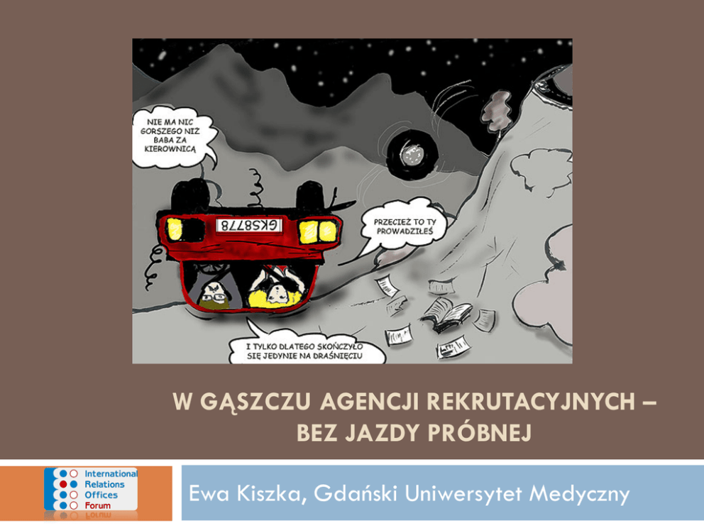 W GĄSZCZU AGENCJI REKRUTACYJNYCH – BEZ JAZDY PRÓBNEJ Ewa Kiszka, Gdański Uniwersytet Medyczny Agent jest… Agent jest (tylko i aż) naszym podwykonawcą: tylko, aż, bo jest naszym „handlowcem” bo pracuje na naszą markę Stan na dziś niż demograficzny (5,5 tys. (2,1%) mniej nowych studentów w uczelniach publicznych ponad 7 tys. (9,7%) mniej nowych studentów w uczelniach niepublicznych tracą popularność studia niestacjonarne jedno z ostatnich miejsc w Europie (PL-2,32%/ OECD-7%/UE-8%) wyjście z ofertą edukacyjną do studentów zagranicznych jako złagodzenie efektu Działania ponad uczelniami projekt „Study in Poland” kampania „Ready, Study, Go! Poland.” KRASP - wprowadzenie do brazylijskiego programu „Nauka bez granic” Departament Współpracy Międzynarodowej w MNiSW projekty „Study in….” – miasta/regiony Działania na poziomie uczelni strategie rozwoju gotowość/konieczność podejmowania indywidualnych działań początki nie są łatwe – bariery, bariery, bariery…. Do problemu umiędzynarodowienia studiów i rekrutacji studentów na zasadach komercyjnych należy podejść strategicznie i kompleksowo. Co jest potrzebne atrakcyjna! oferta studiów w językach obcych baza dydaktyczna zaplecze (akademiki, centrum sportowe) kompetencje, w tym międzykulturowe kadry akademickiej, administracji, studentów profesjonalny proces rekrutacji (w tym zasoby ludzkie, kampanie promocyjno-rekrutacyjne, procesy) współpraca z miastem/atrakcyjność samego miasta akredytacje zagraniczne obecność w rankingach Bariery brak doświadczenia w rekrutacji studentów zagranicznych brak kontaktów ze sprawdzonymi agencjami rekrutacji niewystarczająca znajomość języków obcych w różnych jednostkach np. dziekanat, sekretariat brak niezbędnej kultury organizacyjnej i etnocentryzm braki w ofercie programowej interesujących kierunków z punktu widzenia studenta zachodniego problemy z uzyskaniem wizy przez studenta niedostępny rynek pracy Atuty niskie czesne wykwalifikowana kadra dydaktyczna dojrzałość i wiarygodność instytucjonalna rozpoznawalność/uznawalność dyplomu w Unii Europejskiej Ważne: budować i umacniać markę! Narzędzia promocji i rekrutacji zasoby własne (udział w wystawach i targach) outsourcing - agenci (specjaliści) + różne formy przekazu internetowego media społecznościowe ……. Kto może pełnić rolę agenta? zasoby własne (pozyskiwanie kandydatów bezpośrednio) agencje rekrutacyjne (specjaliści) rządy/przedstawicielstwa rządów państw, z których pochodzą kandydaci nasz rząd (MSZ, MNiSW)/inne instytucje (np. KRASP) Agenci? Kiedy? strategia rozwoju uczelni produkt-rynek ocena opłacalności i szans rozwoju strategia działania kampania rekrutacyjno-promocyjna (AGENCI!) procedury rekrutacyjne kadra administracyjna zaistnienie uczelni na wybranych rynkach pierwsi studenci zagraniczni Jak i gdzie szukać? Global Education Agent Database (490 USD/rok) – (www.thegean.com) grupy zakładane w regionach świata (Australia, Malezja, Chiny, Indie, Tajlandia…) agencje certyfikowane przez rządy państw/inne instytucje (www.airc-education.org/airc-certification-apply) targi/konferencje/spotkania z agentami (ICEF, WEBA) media społecznościowe (grupy biznesowe - FB, Linkedin) u konkurencji sami się znajdą ;) Agent jest… Agent jest tylko i aż naszym podwykonawcą: tylko, aż, bo jest naszym „handlowcem” bo pracuje na naszą markę Rola agenta (kandydat) znalezienie uczelni znalezienie odpowiedniego/atrakcyjnego programu pomoc w kontakcie z uczelnią, urzędami…. Rola agenta (uczelnia) poszukiwanie kandydatów udzielanie rzetelnej i fachowej informacji pomoc w dopełnianiu formalności z uczelnią, urzędami… podtrzymywanie kontaktu do momentu przejęcia opieki nad kandydatem/studentem przez uczelnię Waga wyboru - agent… jest pierwszą osobą, z którą kontaktuje się kandydat, jego rodzice wpływa na wizerunek uczelni wpływa na postrzeganie naszego kraju wpływa na efektywność i sprawność procesu rekrutacyjnego Większość kandydatów korzysta z usług profesjonalistów! (8/10 Chińczyków) Istotne warunki doboru agentów oferta współpracy znajomość języka i kultury wybranego regionu doświadczenie referencje znajomość zasad rekrutacji profesjonalna obsługa kandydata terminowość i kompletność dokumentów odpowiedzialność akcje promocyjne (narzędzia, intensywność) skuteczność Możliwości współpracy z agentem z prowizją/z przetargiem bez prowizji/bez przetargu (umowy zerowe) jasny podział obowiązków egzaminy: kiedy i gdzie (czy można powierzyć agentowi?) kto może nam pomóc? (placówka dyplomatyczna, fundacja, misja, towarzystwo…) Skype? Zagrożenia/pułapki/szanse… nie jesteśmy jedyni poszukiwanie złotego środka (prowizja: wysokość, x2) budowanie lojalności (dobre, ale biznesowe! Relacje) współpraca (np. przy opracowywaniu materiałów promocyjnych – specyfika rynku) monitorowanie/kontrolowanie/ocenianie Elementy umowy z agentem gdzie, kiedy, dane stron umowy, przez kogo reprezentowane oświadczenia stron przedmiot umowy zobowiązania stron wysokość opłat za studia warunki przyjęcia na studia wynagrodzenie agencji klauzula wyłączności agencji klauzula poufności okres obowiązywania umowy i przesłanki jej rozwiązania postanowienia końcowe Ogłoszenie o zamówieniu usługi biznesowe: prawnicze, marketingowe, konsultingowe, rekrutacji, drukowania itp. wartość zamówienia + stawka VAT 22% przykładowe kryteria udzielenia zamówienia - oferta najkorzystniejsza ekonomicznie z uwzględnieniem kryteriów: wysokość zaoferowanej prowizji (%) za każdego zrekrutowanego studenta pierwszego roku nauki. Waga 50 wysokość zaoferowanej prowizji (%) za każdego zrekrutowanego studenta kolejnych lat nauki. Waga 50 Opis zamówienia rzetelna weryfikacja uwierzytelnionej dokumentacji kandydatów dostarczenie pełnego kompletu dokumentów wszystkich kandydatów naj