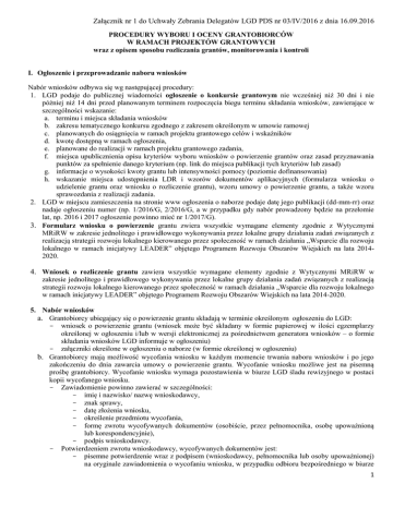 Procedura wyboru grantobiorców 16.09.2016 r.