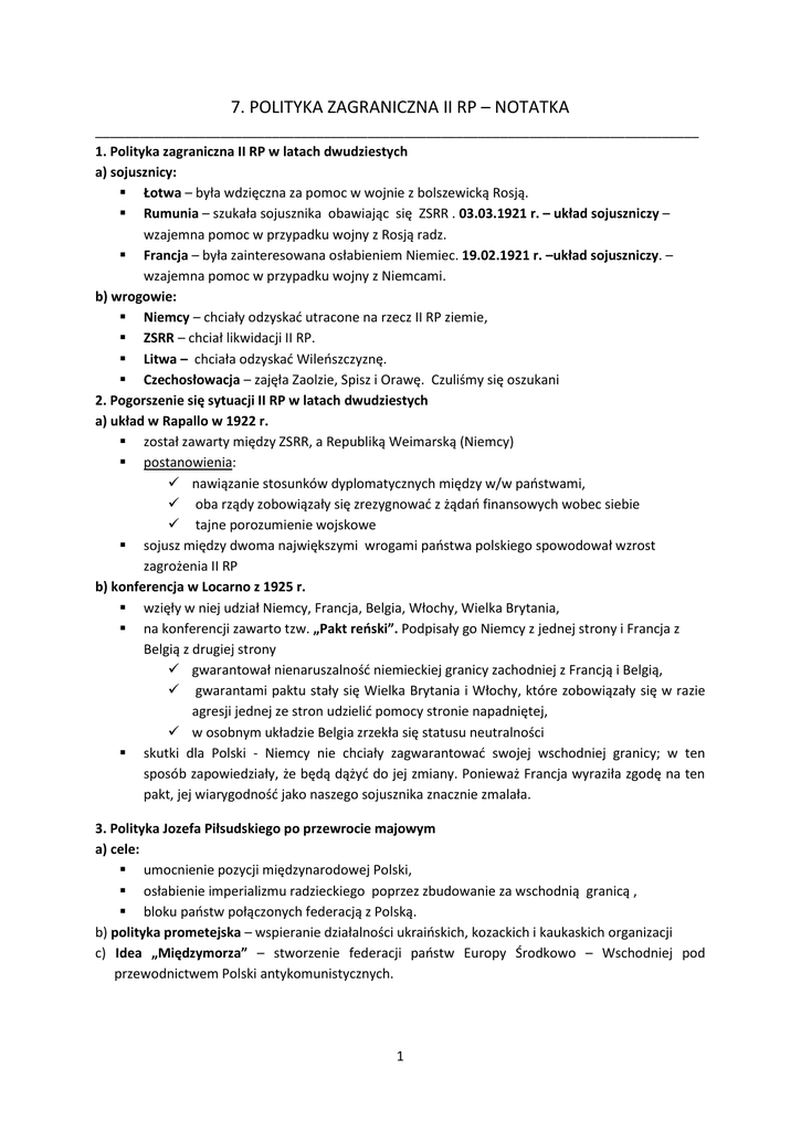 7. POLITYKA ZAGRANICZNA II RP – NOTATKA