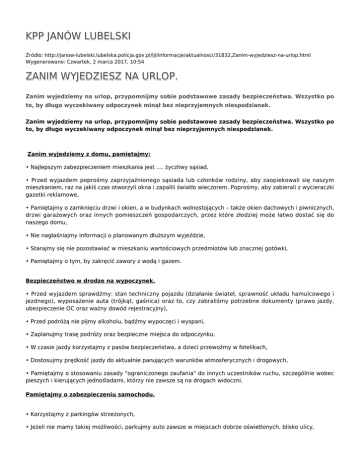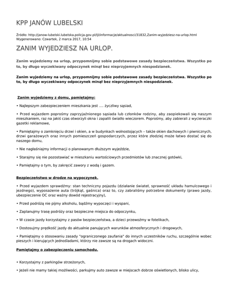 KPP JANÓW LUBELSKI ZANIM WYJEDZIESZ NA URLOP.