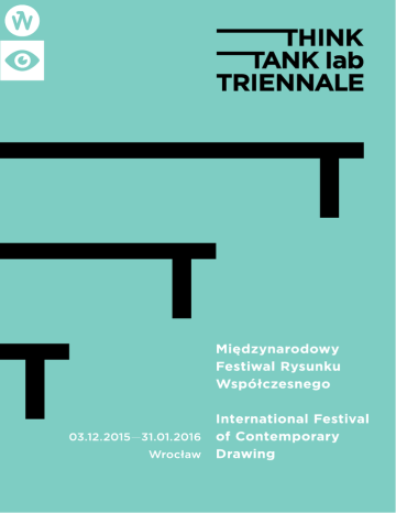 Rysują niemal wszyscy, bez względu na wiek, płeć, narodowość czy profesję. Na kartkach Everybody draws, regardless of age, interests or profession. We draw on sheets of paper, papieru, na ścianach i palcem na szybie, rysują w trakcie rozmowy telefonicznej w ka- walls and with fingers on window panes, during telephone conversations and on café wiarni na serwetce. Rysunek to najbardziej przyjazne i dostępne medium artystyczne napkins. Drawing is the most friendly and accessible artistic medium with immense pos- o ogromnych możliwościach, pozwalające doświadczać w bezpośredni sposób, pełną sibilities, enabling us to experience in a direct way a whole gamut of creative emotions. skalę emocji związanych z aktem tworzenia. It is the best tool to describe individual, everyday experiences, repetitive banal activities, intimate sensations and deep revelations, embedding art in life and life in art. Prezentacja i próba opisania rysunku jako wyodrębnionej jakości to karkołomne zadanie, obciążone ułomnościami myślenia klasyfikującego. Zamiast forsowania definicji, których The growing interest in the most direct way of recording ideas – drawing, its constant wartość i przydatność nie posiada stabilnej natury, pragniemy zaprezentować istniejące lingering on the prosperous margins of art and expressive presence in its mainstream, współcześnie strategie rysunkowe, bez akcentowania szczególnej roli takiego lub innego require a special focus on the medium. Instead of pushing forward with definitions, whose narzędzia czy techniki. Rysunek przez znaczną część publiczności jest postrzegany jako value and usefulness tend to be anything but permanent, we would like to present exist- zjawisko dobrze znajome, posiadające raczej kameralny charakter. Nie chcemy burzyć ing, contemporary drawing strategies without emphasizing the role of any particular tool tego wyobrażenia, ale na pewno chcemy je wzbogacić i zaktualizować. or technique. The majority of general public perceives drawing as a familiar phenomenon and a rather private activity. We do not intend to do away with this image, indeed we Pierwsza edycja Triennale, zrealizowana przez Andrzeja Willa, wieloletniego jej przewod- want to enrich and update it. niczącego i Andrzeja Lachowicza, odbyła się w 1965 roku i przyjęła formę otwartego konkursu. Przez ponad trzy dziesięciolecia wrocławskie Triennale było jedynym przeglą- The first edition of the Triennale, prepared by Andrzej Will, its long-standing chairman, dem rysunku w Polsce i przez długi czas jedynym dużym, odbywającym się cyklicznie took place in 1965 and had the form of an open competition. For more than three decades, wydarzeniem w obszarze sztuk wizualnych w tym regionie kraju. Dzięki ambitnemu pro- the Wrocław Triennale was the only review of drawing in Poland and for a long time the gramowi i otwartej formule Triennale Rysunku uczestniczyli w nim twórcy o światowym only big, cyclical event within the realm of visual arts in this part of the country. From the formacie, a ostatnie dwie edycje Triennale, odbywającego się pod nazwą Międzynaro- very beginning, Andrzej Lachowicz collaborated with the Triennale’s initiator and it was dowego Triennale Rysunku w latach 1992 i 1995 były jednymi z najważniejszych wyda- the two founders’ modern view of art, their curiosity and openness to new artistic ideas, rzeń sztuki tego czasu w środkowej i wschodniej Europie. Organizatorzy nowej edycji that defined this domestically unique project. Thanks to its ambitious programme and przeglądu: Międzynarodowego Festiwalu Współczesnego Rysunku Think Tank lab Trien- open formula, the Drawing Triennale featured world-renowned artists. Without doubt, nale, 50 lat po narodzinach tej wybitnej rysunkowej inicjatywy, mają nadzieję nawiązać the last two editions of the International Drawing Triennale in 1992 and 1995 were among poziomem artystycznym i skalą wydarzenia do najlepszych lat wrocławskiego Triennale. the most important art events of that time in Central-Eastern Europe. Organizers of the new edition of the review, now called the International Festival of Contemporary Drawing Mam nadzieję, że nasz entuzjazm i wysiłek zbudowania szczególnego wydarzenia jakim Think Tank lab Triennale, fifty years after the outstanding initiative was born, now hope to jest wrocławskie Triennale, przyniesie widzom, artystom i obserwatorom sztuki dużo bring back the artistic level and scale of the best years of the original Wrocław Triennale. wartościowych doświadczeń i wiele satysfakcji. I hope the enthusiasm and effort we put in creating the unique Triennale in Wrocław will reward the viewers, artists and art lovers with a lot of valuable experience and plenty of satisfaction. Przemek Pintal Dyrektor programowy Think Tank lab Triennale. Międzynarodowy Festiwal Rysunku Współczesnego Wrocław 2015–16 Przemek Pintal Programme Director Think Tank lab Triennale. International Festival of Contemporary Drawing Wrocław 2015–16 SADAHARU HORIO, Koron Koron, 2009 fot. / photo: Geneviève Haraguchi wystawy główne / main exhibitions 6. Two Sticks 03.12.2015–31.01.2016 10. Brudnopis 04.12.2015–27.01.2016 12. Imagine 10–20.12.2015 14. Galeria Arsenal Notebook 11.12.2015–24.01.2016 wystawy towarzyszące / accompanying exhibitions 3 18. Kengo Kito. Structures 04.12.2015–03.01.2016 19. Ostatki, Drawing Diplomas 07.01–27.01.2016 20. Open Call 07.01–30.01.2016 21. n_T R O P I A. Ćwiczenia z rysunku 08–29.01.2016 22. Mitsutoshi Burn 15.01–30.01.2016 23. Pola Dwurnik. Piosenka o lekarzu i inne rysunki 15.01–29.02.2016 24. Warsztaty i spotkania / Workshops and meetings 25. Mapa / Map 26. Kalendarz wydarzeń / Calendar TTT — 7 TWO STICKS 03.12.2015—31.01.2016 Muzeum Architektury / wernisaż / opening: 03.12.2015 Museum of Architecture czwartek, godz. 18.00 / Thursday, 6 PM ul. Bernardyńska 5, Wrocław artyści / artists: 