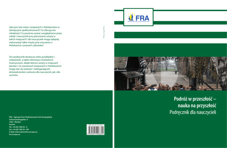 TK-32-10-451-PL-C Jaka jest rola miejsc związanych z Holokaustem w dzisiejszych społeczeństwach? Co oferują one młodzieży? Co powinno zostać uwzględnione przez szkoły i nauczycieli przy planowaniu wizyty w takich miejscach? Jak nauczyciele mogą najlepiej wykorzystać takie wizyty przy nauczaniu o Holokauście i prawach człowieka? Ten podręcznik dostarcza wielu przykładów i wskazówek, a także informacji o kontekście historycznym, dzięki którym wizyty w miejscach pamięci i na wystawach związanych z Holokaustem mogą stać się ważnym i wzbogacającym doświadczeniem zarówno dla nauczycieli, jak i dla uczniów. Podróż w przeszłość – nauka na przyszłość Podręcznik dla nauczycieli FRA - Agencja Praw Podstawowych Unii Europejskiej Schwarzenbergplatz 11 1040 - Wiedeń Austria Tel. +43 (0)1 580 30 - 0 Fax +43 (0)1 580 30 - 691 E-Mail: [email protected] fra.europa.eu Podręcznik obejmuje większość artykułów Karty Praw Podstawowych Unii Europejskiej, w szczególności te odnoszące się do rozdziałów I – V: Godność, Wolności, Równość, Solidarność i Prawa obywatelskie. Agencja Praw Podstawowych Unii Europejskiej Podróż w przeszłość – nauka na przyszłość : Podręcznik dla nauczycieli 2011 - 52 p. - 21 x 27 cm ISBN: 978-92-9192-685-5 doi: 10.2811/21614 Duża ilość informacji na temat Agencji Praw Podstawowych UE jest dostępna w Internecie na stronie fra.europa.eu. © Agencja Praw Podstawowych Unii Europejskiej, 2010 Powielanie materiałów dozwolone pod warunkiem podania źródła. Zdjęcie na okładce : Michael St. Maur Sheil/CORBIS 29 października 1996 r. Auschwitz, Pologne Michael St. Maur Sheil Podręcznik wydany przez Agencję Praw Podstawowych UE jest bezpośrednio związany z projektem badawczym poświęconym roli historycznych miejsc i muzeów w nauczaniu o Holokauście i prawach człowieka w Unii Europejskiej. Raport główny oraz streszczenie projektu Odkryj przeszłość dla przyszłości prezentują główne ustalenia i są dostępne na stronie fra.europa.eu. Encyclopedia FRA - Agencja Praw Podstawowych Unii Europejskiej Schwarzenbergplatz 11 1040 - Wiedeń Austria Tél. : +43 (0)1 580 30 - 0 Fax : +43 (0)1 580 30 - 691 E-Mail : [email protected] fra.europa.eu Europe Direct jest usługą, dzięki której można uzyskać odpowiedź na pytania dotyczące Unii Europejskiej Bezpłatny numer (*) : 00 800 6 7 8 9 10 11 W niektórych sieciach telefonii komórkowej nie ma możliwości wykonywania połączeń zaczynających się od 00 800 lub jest to usługa płatna. Podróż w przeszłość – nauka na przyszłość: Podręcznik dla nauczycieli Przedmowa Holokaust nauczył nas, że jeśli nie są przestrzegane i stosowane podstawowe prawa człowieka, może zdarzyć się coś niewyobrażalnie złego. Istnieje zatem ścisły związek pomiędzy Holokaustem a późniejszym rozwojem praw człowieka. Uchwalenie Powszechnej Deklaracji Praw Człowieka w 1948 r., a następnie przyjęcie europejskich regionalnych instrumentów praw człowieka stopniowo doprowadziło do uznania lekcji Holokaustu i jego znaczenia dla wartości, które wzmacniają dziś Unię Europejską. Unia Europejska uznaje Holokaust za kluczowe, decydujące wydarzenie w historii i dziedzictwie Europy. Wartości, na których zbudowano Unię Europejską i które są wspólne dla wszystkich krajów członkowskich w kluczowych aspektach, odnoszą się bezpośrednio do doświadczeń społeczności żydowskich w okresie przed, podczas i po zakończeniu II wojny światowej. Koncepcja uniwersalności i niezbywalności praw człowieka staje się jeszcze bardziej wyrazista, gdy spojrzymy wstecz na doświadczenie Holokaustu i uświadomimy sobie potrzebę głośnego zabierania głosu i zachowania czujności w kwestii praw człowieka. Rezolucje przyjęte przez Parlament Europejski w celu zachowania żywej pamięci o Holokauście oraz Deklaracja Sztokholmska podpisana w styczniu 2000 r. są dowodem na powszechne uznanie Holokaustu za szczególną zbrodnię w dziejach ludzkości. Zasadnicze znaczenie ma to, abyśmy w kontekście dzisiejszych wyzwań nie powtarzali błędów przeszłości. Agencja Praw Podstawowych Unii Europejskiej chce uwzględniać doświadczenia Holokaustu i wykorzystywać je w nauczaniu przyszłych pokoleń o wadze poszanowania praw człowieka, różnorodności i ochrony mniejszości, w szczególności poprzez odwoływanie się do praw człowieka w kontekście czasów Holokaustu. Nie sposób zrekompensować strat, jakie w wyniku Holokaustu poniosła ludzkość w swej różnorodności i dziedzictwie kulturowym. Nauczanie o Holokauście umożliwia podjęcie tematu naruszania praw człowieka i przestępstw popełnianych w tym obszarze, a także pomaga podnieść poziom świadomości i lepiej zrozumieć to wydarzenie historyczne. Nie zawsze jednak jest łatwo zbudować konstruktywny i sensowny pomost pomiędzy przeszłością a teraźniejszością. Wielu nauczycieli, z którymi przeprowadzono wywiady w ramach projektu badawczego Agencji Praw Podstawowych pt. Discover the Past for the Future: A study on the role of historical sites and museums in Holocaust education and human rights 2 Podróż w przeszłość – nauka na przyszłość: Podręcznik dla nauczycieli education in the EU (Odkryj przeszłość dla przyszłości: badanie roli historycznych miejsc i muzeów w nauczaniu o Holokauście i prawach człowieka w UE), stwierdziło, że rzeczą ważną dla nich jest ukazywanie związku pomiędzy Holokaustem a prawami człowieka i że potrzebują dokładniejszych wskazówek, jak to zrobić. Wizyty w miejscach związanych z Holokaustem, oglądanie wystaw wiążących się z tym tematem mogą być bardzo skutecznym sposobem powiązania nauczania o Holokauście z nauczaniem o prawach człowieka. Z jednej strony dają możliwość szczegółowej analizy wydarzenia historycznego, jakim jest Holokaust, z drugiej mogą dostarczyć solidnej wiedzy potrzebnej do refleksji nad uni