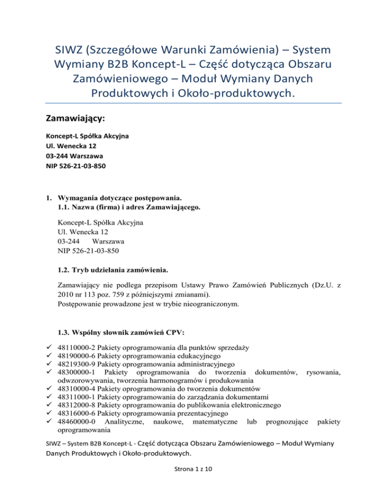 SIWZ Koncept-L Integracja System B2B Zamowieniowy data