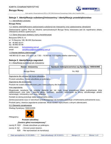 KARTA CHARAKTERYSTYKI Borygo Nowy Sekcja 1. Identyfikacja