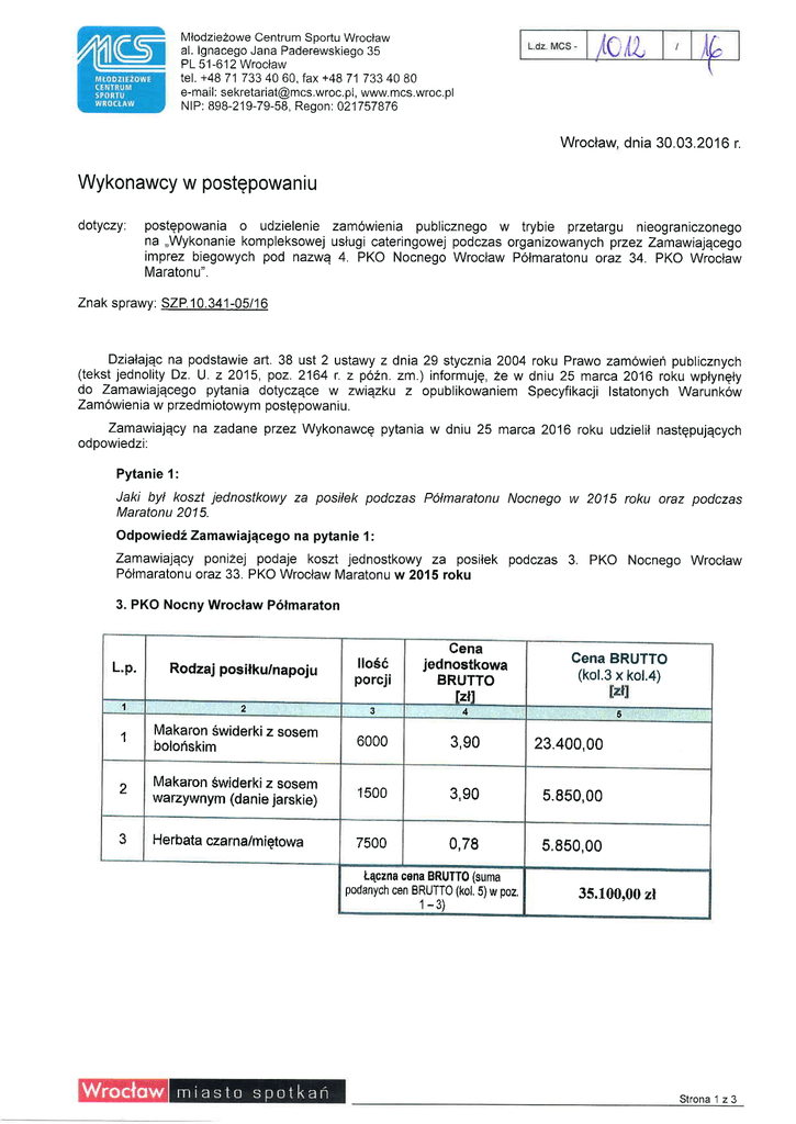 zl brutto orazpodczas 33. Wroclaw Maratonu wynagrodzenie wynosilo 11 700,00 zl brutto, JednoczeSnie
