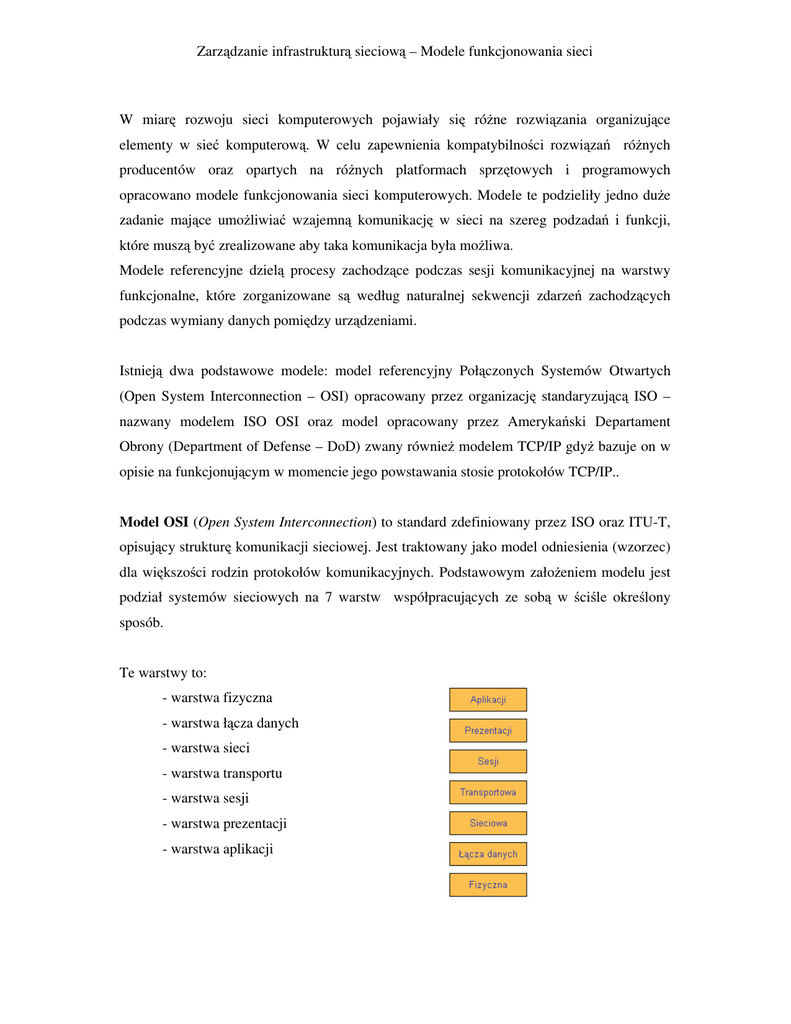 Zarządzanie infrastrukturą sieciową – Modele funkcjonowania sieci