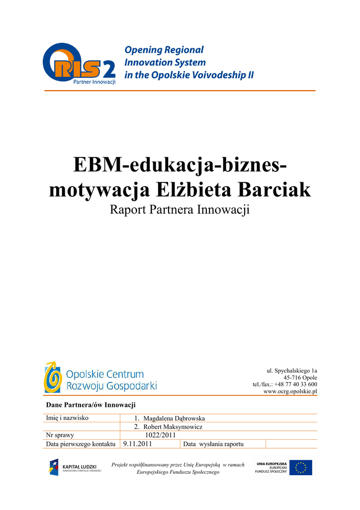 Raport PI EBM - PORTAL ORIS 2