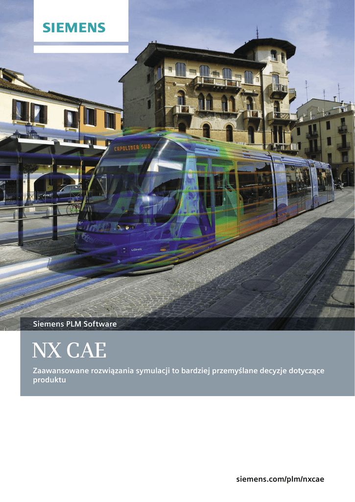 Siemens PLM Software NX CAE Zaawansowane rozwiązania symulacji to bardziej przemyślane decyzje dotyczące produktu siemens.com/plm/nxcae Wyzwania dotyczące symulacji „80% czasu, jaki inżynierowie poświęcają na przygotowanie symulacji systemu lub podsystemu, zajmuje wygenerowanie modelu”. Konsorcjum Autosim „Czynnikiem opóźniającym pracę nie jest tutaj 6-godzinny przebieg solwera, lecz czas poświęcany na stworzenie modeli elementów geometrycznych i skończonych. Jeśli samo przygotowanie danych wejściowych dla solwera zajmuje 6 tygodni, to 6-godzinny czas przebiegu jest nieistotny”. Prezes firmy lotniczej Firma Siemens wie, jakie wyzwania związane są z symulacją Obecny w branży nacisk na krótszy czas rozwoju produktu oraz poprawę jakości skutkuje szerszym stosowaniem symulacji w całym cyklu życia produktu. Czy w Twojej firmie wyniki symulacji są dostępne na tyle szybko, by mogły mieć wpływ na najważniejsze decyzje dotyczące projektu? Wyniki symulacji są dostępne zbyt późno Branżowi liderzy często skarżą się, że wspomagane komputerowo procesy inżynieryjne (CAE) zabierają zbyt dużo czasu, a wyniki są zwykle dostępne zbyt późno lub nie są zsynchronizowane z najnowszą wersją projektu. Z tego powodu zmiany projektowe wynikające z wyników symulacji trzeba wprowadzić, gdy projekt jest już gotowy, co wiąże się z kosztami. Trudności związane z symulacją rzeczywistych warunków Aby przeprowadzić symulację rzeczywistych warunków, analitycy muszą wziąć pod uwagę wiele różnych czynników fizycznych, takich jak dynamika, termodynamika, przepływ cieczy czy też nieliniowy ruch i nieliniowe zachowanie materiału. Zazwyczaj czynniki z jednej domeny fizyki mają też wpływ na zachowanie produktu w innej domenie. Największe wyzwania dotyczące projektowania produktu Zbyt późne wykrywanie problemów/ błędów Przygotowywanie alternatywnych analiz uwzględniających koszty, wydajność i jakość 47% 41% Częste zmiany projektowe 36% Przewidywanie zachowania produktu w rzeczywistych warunkach 28% Redukcja zatrudnienia/brak ekspertów technicznych 24% 0% 2 10% 20% Procent ankietowanych (n=157) Źródło: Aberdeen Group Kwiecień 2010 30% 40% 50% Zrozumienie tego wielofizycznego zachowania to główne wyzwanie związane z dokładnym przewidywaniem wydajności produktu. Złożone procesy i niekompatybilne narzędzia Współczesne narzędzia do symulacji są zwykle powiązane z określoną dziedziną analizy. Z tego powodu analitycy muszą uczyć się obsługi wielu różnych narzędzi i interfejsów użytkownika. Ponadto każde z tych narzędzi używa różnych plików z danymi wejściowymi i wyjściowymi, co w ostatecznym rozrachunku uniemożliwia analitykowi przeprowadzenie skutecznej i dokładnej symulacji wielofizycznej. Korzystanie z wielu niekompatybilnych narzędzi utrudnia również przeprowadzanie analiz alternatywnych, ponieważ przygotowywanie modeli i zarządzanie nimi wymaga od inżyniera zbyt dużo pracy. Utrata wiedzy dotyczącej symulacji i brak zrozumienia wcześniejszych decyzji Duża część firmowego doświadczenia i wiedzy dotyczącej symulacji jest „zamknięta” w głowach analityków. Gdy przejdą oni na emeryturę lub odejdą z firmy, ich doświadczenie i wiedza znikają wraz z nimi. Ponadto danymi symulacji zarządza się w inny sposób niż danymi projektu produktu. Dane symulacji są często przechowywane w katalogach na dysku twardym analityka. Tylko on wie, który plik zawiera dane najnowszej wersji oraz jakie założenia i decyzje poczyniono w przypadku każdej symulacji. Przewaga oprogramowania NX CAE CAE — doświadczenie i cel firmy Siemens Naszym celem jest dostarczanie inżynieryjnych rozwiązań symulacji, które mają wpływ na podejmowanie decyzji dotyczących wydajności produktu w całym cyklu jego życia. Siemens PLM Software realizuje ten cel, wykorzystując ponad 40 lat doświadczenia w dziedzinie symulacji, które obejmuje znane oprogramowanie CAE, takie jak Nastran czy I-deas® firmy SDRC. Bazując na swoim długoletnim doświadczeniu w dziedzinie symulacji, firma Siemens udoskonaliła i rozbudowała swoje technologie oraz udostępniła je w oprogramowaniu CAE NX™. Nowoczesne środowisko CAE Oprogramowanie NX CAE to nowoczesne i w pełni zintegrowane środowisko, które oferuje konkretne korzyści i ułatwia radzenie sobie z wyzwaniami w zakresie symulacji. NX CAE nie wymaga oprogramowania NX CAD i można go używać jako niezależnego pre- i postprocesora obsługującego geometrię pochodzącą z różnych systemów CAD. Jeśli oprogramowanie NX CAE jest wykorzystywane na potrzeby projektowania, użytkownik ma dostęp do dodatkowych korzyści, takich jak możliwość płynnego transferu danych między zespołem projektowym a analitycznym. Procesy symulacji szybsze nawet o 70 procent Większa wydajność symulacji skraca cały cykl rozwoju produktu, dzięki czemu można szybciej wprowadzać produkty na rynek. Skuteczniejsze procesy symulacji prowadzą do powstawania bardziej innowacyjnych rozwiązań, ponieważ dzięki większej liczbie wariantów analizy projektu możliwe jest przetestowanie większej liczby alternatywnych rozwiązań projektowych i wcześniejsze podejmowanie kluczowych decyzji dotyczących projektu. Niższy koszt ogólny rozwoju produktu Szybszy proces symulacji oznacza, że wyniki analizy są wcześniej udostępniane zespołowi projektowemu, co pozwala ograniczyć konieczność wprowadzania kosztownych zmian w gotowym projekcie. Dzięki korelacji procesu symulacji z testami fizycznymi zwiększa się dokładność wyników analizy, co pozwala ograniczyć koszty tworzenia fizycznych prototypów. Baza symulacji NX CAE pozwala osiągnąć te korzyści z poziomu w pełni zintegrowanego środowiska, które łączy wszystkie poniższe elementy: • zaawansowane modelowanie analiz i najlepsza platforma geometrii, • multidyscyplinarna symulacja i optymalizacja, • 