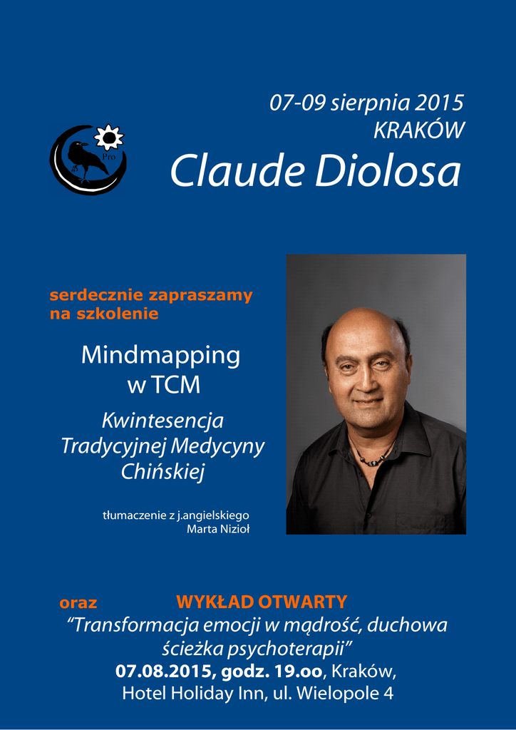 07-09 sierpnia 2015 KRAKÓW Claude Diolosa serdecznie zapraszamy na szkolenie Mindmapping w TCM Kwintesencja Tradycyjnej Medycyny Chińskiej tłumaczenie z j.angielskiego Marta Nizioł oraz WYKŁAD OTWARTY “Transformacja emocji w mądrość, duchowa ścieżka psychoterapii” 07.08.2015, godz. 19.oo, Kraków, Hotel Holiday Inn, ul. Wielopole 4 Claude Diolosa, założyciel Avicenna Institut (Niemcy, Włochy), to niekwestionowany pionier w krzewieniu TCM w Polsce. Od 28 lat naucza u nas zagadnień Tradycyjnej Medycyny Chińskiej. W swoim życiu łączy filozofię, Tradycyjną Medycynę Chińską oraz prawdy uniwersalne i przekazuje je w charyzmatyczny, klarowny i pełen humoru sposób. Od lat współpracuje z uniwersytetem w Chengdu w Chinach, gdzie zapraszany jest m.in. jako wykładowca. Ponadto stale szkoli terapeutów, lekarzy i farmaceutów m.in. w Niemczech, Austrii i Szwajcarii. O kursie: Diagnostyka różnicowa jest niezbędną podstawą, na której można budować terapię bez ryzyka. Czy przeprowadza się ją za pomocą akupunktury, masażu, moksy lub ziół, nie ma tu znaczenia. Najważniejsza jest precyzyjna diagnoza. Jak tylko ustalisz diagnozę i odpowiednią strategię leczenia, terapia staje się bardzo prosta. Sprzeczności Diagnostyka różnicowa nie jest tym, co przedstawia się w dzisiejszej literaturze TCM. Czyta się na przykład o niedoborze Qi Śledziony, objawy i receptury są opisane bardzo jednoznacznie i precyzyjnie, więc na początku można mieć wrażenie, że TCM jest medyczną zabawką dla dzieci. W praktyce sytuacja nie jest tak jednoznaczna, ponieważ obrazy energetyczne są bardzo zmienne i w pewien sposób odpowiadają istocie I Cing, wielkiej Księdze Przemian. Jeśli jako terapeuta jesteś w stanie śledzić i interpretować tę transformację, Twoja terapia będzie efektywna. Jeśli nie, mogą powstać nawet skutki uboczne. Trudnym orzechem do zgryzienia dla mnie, jak i wielu kolegów po fachu są często pojawiające się sprzeczności pomiędzy wyglądem języka, nalotem, pulsem i wyglądem twarzy pacjenta. Muszę przyznać, że moja osobista metoda diagnostyki po latach doświadczeń ograniczyła się do trzech podstawowych cech, a mianowicie: wyglądu pacjenta, cech pulsu i języka. Wypowiedzi pacjenta są wprawdzie ważne, ale zadawanie mu zbyt wielu pytań może spowodować spore zamieszanie. Pomijam fakt, że pacjenci rzadko opowiadają całą prawdę. Wolę więc bazować na tym, co widzę i czuję. Przez lata opracowałem system, który określam jako Mindmapping TCM. Ten system integruje wszystkie metody diagnostyki różnicowej i dzięki temu znosi wszystkie zewnętrzne sprzeczności. Zawsze chętnie prezentuję w obrazach klinicznych ten system diagnostyczny na wykładach dla moich studentów. Zawiera on również istotę astrologii, przede wszystkim zaś dogłębne metody I Cingu, w tym znaczenie trygramów i heksagramów. Nie powinniśmy zapominać, że TCM ma swoje korzenie w tych ponadczasowych prawach, a inspiracja pochodzi od mitycznych cesarzy i przede wszystkim z taoizmu. Studiowanie klasycznych dzieł medycyny chińskiej oraz Księgi Przemian ma bardzo istotne znaczenie dla zrozumienia ówczesnej filozofii i metod stosowanych przez starożytnych lekarzy. Wszystkie receptury Zhang Zhong Zhinga są odzwierciedleniem heksagramów i zawierają istotę Yin, Yang jak też Wu Xing. Już same nazwy dają pewne wskazówki: Da Qing Long Tang (Wywar Zielonego Smoka), Bai Hu Tang (Wywar Białego Tygrysa) etc. W metodzie Mindmapping wszystkie systemy, właściwości pulsu, języka i twarzy zostały połączone z istotą I Cing i Wu Xing. Ten system wygląda następująco: 1234- Wewnątrz i Zewnątrz – Luo i Yuan Zegar Narządów Liu Jing Wszystko połączone jest z u Wu Xing Przykład: 1234- Niedobór Qi Śledziony – Wilgoć Żołądka Zegar Narządów: Zastój Płynów w San Qiao > obrzęki Liu Jing: Tai Yin > niedobór Qi Płuc – niska odporność Wuxing > Wilgoć w Jelicie Grubym – luźne stolce Praktyczne zastosowanie w farmakologii: 12345- Niedobór Qi Śledziony = atractylodes macrocephalae rhizoma praep - chao bai zhu Wilgoć Żołądka = citri reticulatae pericarpium - chen pi Zegar Narządów – Wilgoć w San Qiao = poria alba sclerotium - bai fu ling Niedobór Qi Płuc = astragali radix - huang qi Wu Xing - Wilgoć w Jelicie Grubym = aucklandiae radix - mu xiang - amomi fructus sha ren To zaledwie uproszczony przykład tego systemu, który bardzo dużo zawiera i wszystko łączy. Na przykład Wilgoć w Jelicie Grubym wskutek stagnacji przekształci się w Wilgoć i Gorąco etc. Wprawdzie wyuczenie się oddzielnych wzorców patologii ma na początku znaczenie, ale z czasem stają się one niepotrzebne, ponieważ istota choroby jest zawsze dynamiczna. Sprzeczności pomiędzy pulsem, językiem i wyglądem pacjenta Przykład: puls pacjenta jest nitkowaty – Wei Mai, ale ciało języka grube i szerokie, pacjent ma 38 lat. Sytuacja jest bardzo poważna, ponieważ puls, język i wygląd są sprzeczne. Pacjent ma TAN, wysoki poziom cholesterolu, a przede wszystkim chorobę wieńcową serca. Istota diagnostyki różnicowej (Bian Zheng) jest niezgłębiona i potrzebuje czasu, by ją opanować. Do tego dochodzi wiedza o meridianach głównych, TMM, Jing Bie, naczyniach Luo i innych strukturach. Terapeuta powinien dysponować bardzo dobrym jelitem cienkim, by móc powiązać ze sobą wszystkie informacje. Życzę Wam wszystkim powodzenia i inspiracji w pracy! Claude Diolosa MIEJSCE: PLAN ZAJĘĆ: INFO i ZGŁOSZENIA: Kraków, Hotel Holiday Inn ul. Wielopole 4 piątek 07.08 g.15.oo-18.oo sobota 08.08 g.10.oo-18.oo niedziela 09.08 g.10.oo-18.oo [email protected] Arkadiusz Curzytek 601413371 Marta Markowska 504667588 KONTO: mBank 58 1140 2004 0000 3402 7537 1550 CENA: 1150,oo TYTUŁEM: szkolenie Claude Diolosa 2015 WARUNKI PRZYJMOWANIA ZGŁOSZEŃ: o uczestnictwie w szkoleniu decyduje kolejność zgłoszeń oraz terminowy przelew zaliczki