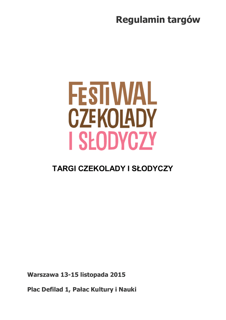 Regulamin targów - Festiwal czekolady i słodyczy