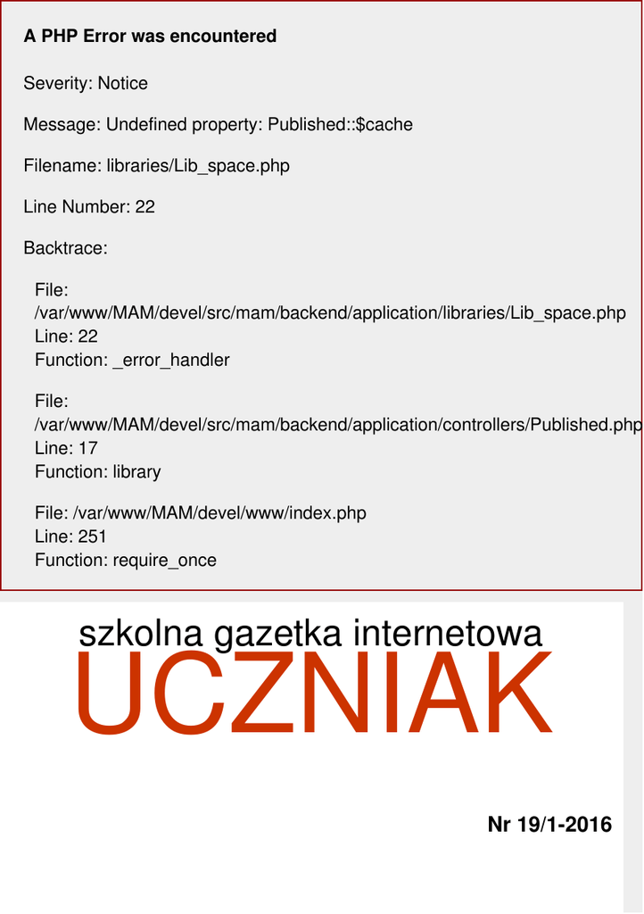 A PHP Error was encountered Severity: Notice Message: Undefined property: Published::$cache Filename: libraries/Lib_space.php Line Number: 22 Backtrace: File: /var/www/MAM/devel/src/mam/backend/application/libraries/Lib_space.php Line: 22 Function: _error_handler File: /var/www/MAM/devel/src/mam/backend/application/controllers/Published.php Line: 17 Function: library File: /var/www/MAM/devel/www/index.php Line: 251 Function: require_once szkolna gazetka internetowa UCZNIAK Nr 19/1-2016 Pora do szkoły... Sierpień przywitał nas deszczową aurą, przypomniało nam, że wakacje co dobiegają końca. Co przyniesie wrzesień? nieuchronnie pewno znajomy dreszczyk emocji związany Na p z owrotem do szkoły. Reszta jest wielką niespodzianką! Mamy nadzieję, że dla naszej redakcji rok nowyszkolny okaże się łaskawy. Ubiegły przyniósł problemy techniczne, z którymi dzielnie walczyliśmy do tej pory. Nowy Uczniak to zupełnie nowy sposób jego redagowania... więc w najbliższym czasie liczymy na Waszą wyrozumiałość :-) Obiecujemy, że dołożymy wszelkich starań, aby każdy kolejny numer gazetki był ciekawszy od poprzedniego. Szczęśliwego Nowego Roku Szkolnego! :) Pochwal się wakacyjnym zdjęciem! Prześlij je na adres: [email protected]! Na najciekawsze fotki czekają nagrody! Jeśli bierzesz udział w życiu aktywny masz niebanalne szkoły, pomysły i lubisz działać w grupie, zapraszamy do naszego redakcyjnego grona! Jesień... jeszcze ciepło i kolorowo?CoA można można,robić moi jesienią, drodzy, kiedy pójść wnalesie grzyby! Oczywiście człowieka dorosłego zabrać ze sobą trzeba, chociażby po to, aby pomógł dźwigać kosz pełen prawdziwków, podgrzybków i dorodnych kozaczków! Dorośli bywają też lepsi od nawigacji w telefonie i zazwyczaj lepiej orientują się, co różni muchomora od maślaka. Co w zbieraniu grzybów fajnego, zapytacie. Jak to co? Zupa grzybowa, pierogi z grzybami, że o spacerze i świeżym powietrzu nie wspomnimy! Z domu należy wyjść skoro świt, chyba że mamy w planie dreptać po piętach innym grzybiarzom. Rankiem w lesie występuje zjawisko nazywane rosą, więc dobrze mieć na nogach kalosze. Im bardziej niedziurawe, tym lepiej. Kleszcze i komary też lubią lasy! Dlatego tuż po wyjściu ze strefy cywilizacyjnej i przekroczeniu progu leśnej dziczy, należy dokładnie spryskać się lub posmarować odpowiednim preparatem odstraszającym. Ubieramy się stosownie do pogody. Koszyczek w dłoń i w drogę! Podczas spaceru pamiętamy, że przyrodę trzeba szanować! Nie rozdeptujemy niejadalnych grzybów, nie niszczymy leśnej ściółki! A jeśli mamy problem z rozpoznaniem grzyba, zawsze prosimy o pomoc dorosłego! Darz bór! Świat oszalał na punkcie gry Jak grać? Przede wszystkim trzeba być właścicielem smartfona z androidem lub iPhon'a. Po zainstalowaniu gry i jej włączeniu dostrzegamy mapę najbliższego otoczenia, na której wyświetlane są Pokemony. Po dotknięciu wyświetla się obraz z aparatu smartfona... z Pokemonem stojącym np. na naszym łóżku czy w naszym Stworki trzeba „schwytać", czyli trafiać wyświetlaną kulą (tzw. ogrodzie. pokeball). Pierwszego łapiemy w domu, kolejne w okolicy. Jeśli Pokemon pojawi się w naszym pobliżu, wyświetli się na ekranie telefonu. Gra zachęca do wychodzenia z domu i zwiedzania. W jaki sposób? pierwsze, przemieszczanie się zwiększa szansę znalezienia nowych Po pokemonów. Po drugie, w realnym świecie oznaczone są specjalne punkty, odwiedzenie których pozwala nam zdobyć potrzebne do gry dodatki i surowce. Wspomniane punkty nazywane PokeStops umiejscowione są zwykle przy prawdziwych pomnikach, zabytkach, kościołach i innych ciekawych miejscach. "Okazuje się, że szaleństwo związane z grą Pokemon GO doprowadziło już do wielu niebezpiecznych incydentów. Na przykład policjanci w USA ostrzegają przed złodziejami, którzy wykorzystują aplikację do wabienia swoich ofiar. W mieście O’Fallon w Missouri zatrzymano mężczyzn, którzy wykorzystując lokalizację użytkowników gry i wirtualnych stworków napadali na nich z bronią i okradali. W mediach społecznościowych pojawia się również coraz więcej doniesień o rodzaju wypadkach z udziałem użytkowników aplikacji. Jedne z różnego najbardziej absurdalnych przypadków dotyczą na przykład wpadania do rzek w czasie próby łapania rzecznych pokemonów. Z kolei część nieświadomych graczy w celu złapania pokemona... rzucała w jego kierunku swoim telefonem, zamiast jedynie przesunąć palcem po ekranie." źródło: onet.pl. niezalezna.pl PANCAKES a'la Milena Masz ochotę na pyszne klasyczne śniadanko w stylu amerykańskim? Oto przed Tobą sprawdzony przez naszą redakcję przepis na naleśniki zza oceanu... Potrzebne będą: - 2 szklanki mąki - 2 jajka - 1-2 szklanki mleka - 75g roztopionego masła - 2 łyżeczki proszku do pieczenia - 1 łyżka cukru pudru - szczypta soli - syrop klonowy - liść świeżej mięty Do dzieła! Jajka dokładnie ubij z cukrem pudrem, dodaj mąkę, proszek do pieczenia, mleko i roztopione masło. Całość delikatnie i wolno wymieszaj. Ciasto smaż na patelni bez tłuszczu na małym ogniu, żeby naleśniki miały czas urosnąć i żeby nie spaliły się. Nakładaj małe porcje i układaj je w kółka. Przygotuj talerz, na który będziesz wykładać naleśniki. Ułóż je w stos i polej syropem klonowym. Na szczycie tego stosu połóż świeżą miętę do ozdoby. Smacznego! Milena Na deser dowcip kulinarny :-) Kubuś Puchatek i Kłapouchy siedzą przy ognisku i jedzą szaszłyki. W pewnym momencie Kłapouchemu zebrało się na zwierzenia i mówi: - Wiesz, Kubusiu, ja to właściwie nie lubię Prosiaczka. - To nie jedz - odpowiada Puchatek. Samą nauką człowiek żyć nie może! Dlatego w sobotę 10 września nasi koledzy z klasy VI b na rowery... wsiedli i wspólnie z nauczycielami i rodzicami wyruszyli w siną dal podziwiając piękne okoliczności pr