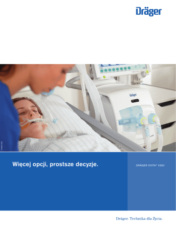 D-63374-2012 Więcej opcji, prostsze decyzje. DRÄGER EVITA® V300 02 | dzisiaj właściwą decyzję? Jak podjąć D-63267-2012 Optymalne decyzje wymagają możliwości wyboru wielu opcji D-60100-2012 Codzienność na oddziale intensywnej terapii to stale rosnące potrzeby: większa liczba pacjentów w stanie krytycznym, oczekiwanie wydłużenia czasu życia, więcej miejsca w pobliżu łóżka, bardziej wszechstronny transport pacjenta, szybkie wprowadzanie usprawnień klinicznych i technicznych… D-63343-2012 D-63058-2012 D-63230-2012 | 03 Niezbędny jest elastyczny sprzęt, dopasowany do zmieniających się warunków i wyzwań codziennej pracy w szpitalu. STANDARD EVITA Dobro pacjenta i zapewnienie możliwie najkrótszego pobytu na oddziale intensywnej terapii jest oczywiście najważniejsze. Właściwym rozwiązaniem jest respirator dopasowany do indywidualnych potrzeb, który zaspokoi oba wymagania teraz i w przyszłości. Nowa generacja urządzeń Evita spełnia standardy wysokiej jakości, dzięki wykorzystaniu do jej zaprojektowania 25-letniego doświadczenia i wiedzy, zdobytej przy produkcji ponad 80 000 urządzeń. Dräger Evita V300 nie podejmie za Ciebie codziennych decyzji, może jednak sprawić, że będzie to łatwiejsze. 04 | Okazja do rozwoju. UNIWERSALNOŚĆ I SKALOWALNOŚĆ –– Wentylacja dla dorosłych, dzieci i noworodków: inwazyjna, nieinwazyjna oraz z wykorzystaniem terapii O2 –– Wentylacja kontrolowana objętościowo lub ciśnieniowo, oddychanie spontaniczne –– Niezależność dzięki opcjonalnym jednostkom zasilającym: GS500 (sprężone powietrze), PS500 (zasilanie elektryczne), TSU (gaz) –– Możliwość elastycznej rozbudowy poprzez zastosowanie jednostki zasilającej lub wózka –– Złącze USB umożliwia łatwy transfer indywidualnych konfiguracji respiratora –– Funkcja pomocy z możliwością wyszukiwania zgodnie z kontekstem pomaga w ustawiania parametrów wentylacji i wyjaśnia działanie urządzenia WYSOKA JAKOŚĆ WENTYLACJI –– Automatyczna kompensacja oporów rurki intubacyjnej (ATC) kompensuje opory sztucznych dróg oddechowych –– Automatyczna kompensacja przecieków przy wentylacji inwazyjnej i nieinwazyjnej –– AutoFlow® w wentylacji kontrolowanej objętościowo zapewnia objętość oddechową przy najniższym możliwym ciśnieniu –– PC-APRV z opcjonalną funkcją AutoRelease umożliwia oddychanie spontaniczne ze stałym dodatnim ciśnieniem w drogach oddechowych i krótkotrwałym uwolnieniem ciśnienia –– Głębokie i swobodne oddychanie dzięki funkcjom AutoFlow®, Volume Guarantee (VG) lub SPN-CPAP –– Różne możliwości wspomagania oddychania spontanicznego, np. VC-MMV, SPN-PPS, Volume Support (VS), Pressure Support (PS) –– Zaawansowane narzędzia do analizy takie jak trendy lub monitorowanie CO2 –– Automatyczne odzwyczajanie za pomocą SmartCare®/PS –– Graficzna prezentacja oporów oddechowych i podatności za pomocą Smart Pulmonary View Zakres funkcji oferowanych przez Evitę V300 może być dopasowywany indywidualnie dzięki opcjom programowym i sprzętowym. D-72763-2013 | 05 06 | Idealne dopasowanie do codziennej pracy. Wentylacja nieinwazyjna Zapobieganie Wentylacja inwazyjna Powrót do zdrowia Stabilizacja Odzwyczajanie Dräger Evita V300 zapewnia codzienną wentylację najwyższej jakości, która może być w każdej chwili dopasowana do zmieniających się warunków i potrzeb. OCHRONA –– Wentylacja przez maskę z NIV zapewnia bardzo krótki czas reakcji na wysiłki pacjenta i doskonałą synchronizację wdechową oraz końcowo-wdechową – dostępna we wszystkich trybach, wraz z kompleksowym monitorowaniem i adaptacją systemu alarmów STABILIZACJA ––AutoFlow® umożliwia swobodny i głęboki oddech oraz oddychanie spontaniczne we wszystkich trybach wentylacji kontrolowanej objętościowo ––Zintegrowane monitorowanie CO2 pomaga Non-invasive ventilation w weryfikacji procesów intubacji iPrevent wentylacji ––Smart Pulmonary View® (Inteligentny Obraz Płuc) Invasive ventilation umożliwia wizualizację funkcji płuc w czasie rzeczywistym. ODZWYCZAJANIE ––Automatyczny i inteligentny system odzwyczajania SmartCare®/PS skraca czas pobytu na oddziale intensywnej terapii ––Tryb obowiązkowej wentylacji minutowej (MMV) wraz z funkcją AutoFlow zapewnia minimalną objętość minutową przy niewystarczającym oddychaniu spontanicznym ––Wspomagana ciśnieniowo wentylacja wyzwalana przez pacjenta (SPN-PPS) umożliwia jej dostosowanie proporcjonalnie do wysiłku oddechowego ––Wspomaganie objętościowe lub ciśnieniowe spontanicznego oddychania Recover Stabilize POWRÓT DO ZDROWIA Wean ––Możliwość wentylacji nieinwazyjnej i terapii tlenowej umożliwia lepszą organizację pracy i zmniejsza ryzyko ponownej intubacji1) 1) Hilbert G; Noninvasive pressure support ventilation in COPD patients with postextubation hypercapnic respiratory insufficiency; Eur Respir J 1998; 11: 1349–1353 | 07 Akcesoria MT-2099-2007 AKCESORIA INFINITY ID Akcesoria Infinity® ID zostały opracowane specjalnie, w celu uproszczenia obsługi i optymalizacji cyklów pracy: funkcja RFID wykrywa nieprawidłowe połączenia obwodu pacjenta do portów oraz umożliwia import ustawień wentylacji po podłączeniu do respiratora. Okresy wymiany akcesoriów mogą być monitorowane. Transport D-43483-2012 GS500, PS500, JEDNOSTKA TRANSPORTOWA (TSU), PRZYŁĄCZE DO ŁÓŻKA Pełną elastyczność użytkowania w dowolnym miejscu szpitala – nawet przez 4 godziny – zapewniają mobilne źródło zasilania PS500 oraz mobilny zestaw dostarczania powietrza GS500. Jednostka transportowa TSU wyposażona jest w dwie butle z gazem i przyłącze do łóżka, co sprawia, że transport pacjenta staje się łatwiejszy. Szkolenie D-74697-2013 MATERIAŁY SZKOLENIOWE EVITA V300 Firma Dräger wspiera codzienną pracę w szpitalu, oferując innowacyjne, interaktywne programy szkoleniowe, które dostarcz