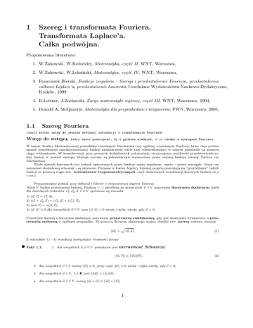 3. Franciszek Bierski, Funkcje zespolone - Szeregi i przekształcenie Fouriera, przekształcenie