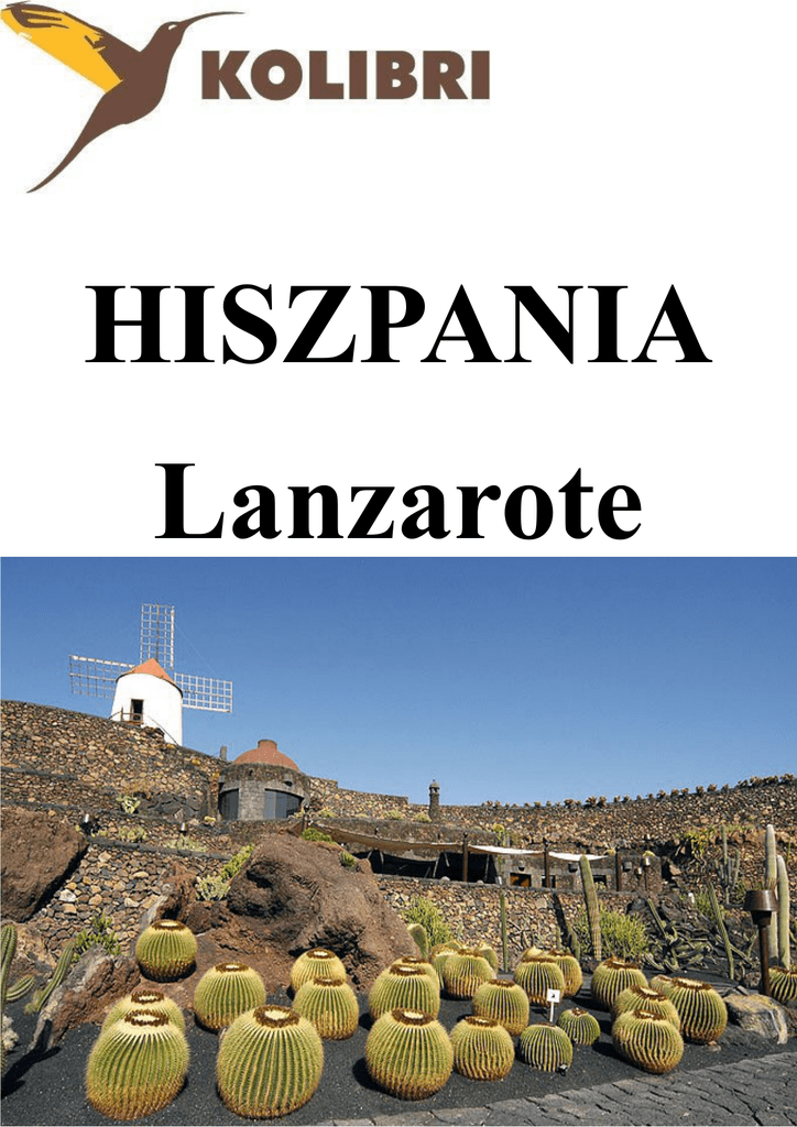 HISZPANIA Lanzarote Stolica: Madryt Powierzchnia: 504 645 km² Ludność: 47 150 tys. Waluta: euro (EUR), 1 EUR = 100 centów Napięcie: 230 V Język: hiszpański Wiza: wiza nie jest wymagana Krótka informacja Wyspa Gór Ognistych, niebiańskich plaż i nieustającej fiesty. Informacje ogólne Wulkaniczna wyspa Archipelagu Kanaryjskiego położona najbliżej Europy, na której wciąż można spotkać bulgoczącą lawę i liczne, niewielkie gejzery. Jej surowy krajobraz potrafi jednak zachwycić. Mimo iż Lanzarote nazywana jest „Wyspą stu wulkanów” znajduje się ich tutaj prawie 300 – mniejszych i większych, które stworzyły niesamowity krajobraz, a nawet można powiedzieć, że nadal go tworzą. Całe terytorium wyspy zostało wpisane na Listę UNESCO jako Światowy Rezerwat Biosfery, a najlepszym miejscem poznania zjawisk wulkanicznych jest Park Narodowy Timanfaya powstały na obszarze objętym erupcjami w 1730-1736 r. Można znaleźć tu wiele plaż, o różnej wielkości, fakturze i kolorze, a także kurortów – od tętniących życiem również w nocy po kameralne i urokliwe miejsca, gdzie rozkoszować się będziemy ciszą przerywaną przez szum fal. Wyspa, mimo braku bujnej, naturalnej roślinności uważana jest za jedną z najpiękniejszych i najciekawszych również ze względu na kolorowe skały z wytracających się minerałów oraz turkusowe i zielone laguny. Niezwykłość wyspy objawia się również w jej kulturze, a zwłaszcza w tradycyjnym budownictwie z zielonymi okiennicami, które pozostawił po sobie architekt i artysta Cesar Manirque. Większość miejscowości wypoczynkowych zlokalizowanych jest na południu i wschodzie wyspy ze względu na rozległe plaże. Zachodnie wybrzeże to głównie klify, niewielkie, ale wciąż aktywne stożki wulkaniczne oraz kameralne, naturalne plaże osłonięte skałami. Stolicą i największym miastem wyspy jest Arracife położone na wschodnim wybrzeżu. Powstało w XVw. podczas podbojów hiszpańskich i przez wiele lat pozostawało niedużą wioską rybacką, jednak po podbojach Nowego Świata stało się idealnym, choć niewielkim portem przeładunkowym. Pod koniec XVI w. miasto zostało splądrowane i prawie całkowicie zniszczone podczas ataku piratów i dopiero po kilkunastu latach odbudowy zaczęło wracać do dawnej świetności. Dziś jest to nowoczesne miasto i jedyne miejsce na wyspie z wysoką zabudową. Znajduje się tu port towarowy i pasażerski, a na południe od miasta mieści się międzynarodowe lotnisko pod tą samą nazwą. Arracife posiada sztuczną, miejską plażę ze złotym piaskiem, wzdłuż, której ciągnie się promenada ze sklepami i licznymi tawernami. Jest tu też wiele hoteli o różnym standardzie. Costa Teguise – jest jednym z głównych kurortów wakacyjnych wyspy położonym na północny wschód od Arracife, który poza znakomitymi warunkami do uprawiania sportów wodnych posiada jeszcze Aqua Park, 18-dołkowe pole golfowe, wiele restauracji i sklepów z pamiątkami. Znajdują się tutaj 4 plaże: największa Las Cucharas ze złotym piaskiem i osłonięta falochronem – raj dla miłośników windsurfingu, niewielka Los Charcos z jasnym piaskiem, piaszczysto-żwirowa El Jabilillo i Bastian – również piaszczysto-żwirowa. Puerto del Carmen – tętniący życiem kurort na południe od Arracife z dwiema dużymi, piaszczystymi plażami, wieloma hotelami o różnym standardzie, barami, tawernami i sklepami. Playa Blanca – jak sama nazwa wskazuje, najbardziej charakterystyczną cechą kurortu jest biała plaża. Jest to jeden z większych kurortów południowej zatoki z wieloma hotelami różnej klasy, nowoczesnym portem jachtowym i licznymi sklepikami oraz tawernami. Las Coloradas – niewielka miejscowość turystyczna z dużym portem jachtowym, wieloma hotelami, restauracjami i niewielkim, wąskim odcinkiem ciemnej plaży. Jednak na wschód za miastem znajdują się malownicze, złote plaże i liczne kameralne zatoczki dostępne od strony morza i osłonięte kolorowymi skałami wulkanicznymi. El Golfo – niewielka miejscowość zachodniego wybrzeża z piaszczysto-żwirową, ciemną plażą i kilkoma, niewielkimi hotelami o różnym standardzie. Jest tu bardzo cicho, co sprawia, że najczęściej odpoczywają tu osoby chcące odpocząć od zgiełku miasta. Na południe od El Golfo znajduje się zatoka z ciemnym, delikatnym piaskiem i zielonym jeziorkiem lagunowym, które jest jednym z najczęściej fotografowanych miejsc wyspy. Kuchnia Mimo przynależności kuchni Wysp Kanaryjskich do Hiszpanii posiadają one odmienną kulturę i tradycje kulinarne. Kuchnia kanaryjska w dużej mierze nawiązuje do tradycji i prostych połączeń pierwotnych mieszkańców wysp – Guanczów, których kultura po podboju hiszpańskim w znacznym stopniu zaginęła. Podstawowymi składnikami są tutaj głównie pieczone lub grillowane ryby i owoce morza, jak również mięso, ryż, kukurydza, bataty oraz typowe warzywa i owoce tropików. Każda z wysp oferuje swoje regionalne, kulinarne perełki, a Lanzarote oferuje szczególne bogactwo ryb przyrządzanych w tradycyjny sposób. Dość popularne na wyspach sancocho (suszona ryba) jest podawane tu zwykle ze słodkimi ziemniakami, cebulą i czosnkiem, a owoce morza są rzadziej spożywane niż na innych wyspach. Popularne są również sardynki, pieczony tuńczyk czy vieja. Do wielu potraw, zwłaszcza mięsnych i rybnych podawany jest gofio – chleb wyrabiany z pieczonych i następnie zmielonych ziaren zbóż. W daniach mięsnych dominują króliki podawane często z bardzo pikantnym sosem mojo picon oraz ziemniakami gotowanymi w bardzo słonej wodzie. Dania są dość proste i bardzo smaczne, a sporą część menu zajmują tzw. potrawy jednogarnkowe. Wyspy kanaryjskie słyną z kozich serów, które na każdej z nich mają inny smak, a na Lanzarote są świetnym dodatkiem jako tapas do kieliszka miejscowego wina. Lanzarote jest jedynym miejscem n