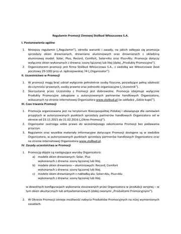 Regulamin Promocji Zimowej Stolbud Włoszczowa S.A. I.
