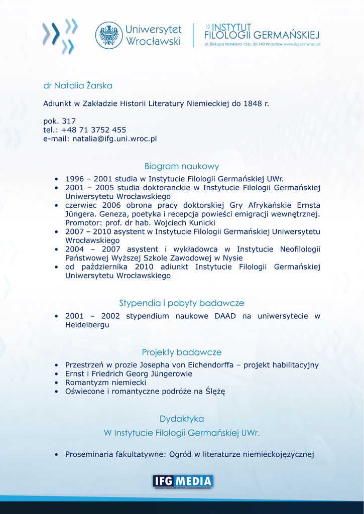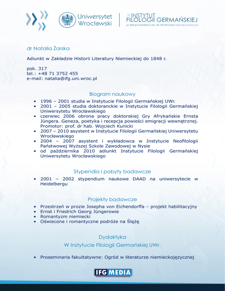 Pełny Biogram - Instytut Filologii Germańskiej UWr