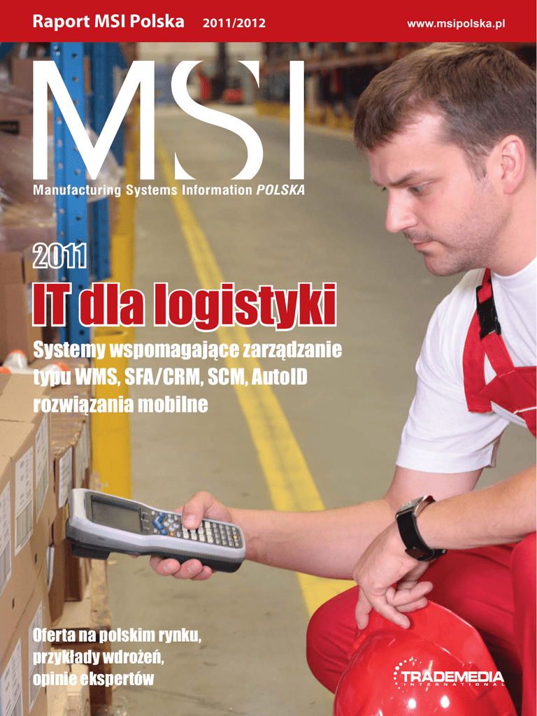 Raport MSI Polska 2011/2012 2011 IT dla logistyki Systemy wspomagające zarządzanie typu WMS, SFA/CRM, SCM, AutoID rozwiązania mobilne Oferta na polskim rynku, przykłady wdrożeń, opinie ekspertów www.msipolska.pl JEST GODZINA 8:55. 72 palety z towarem czekają na wyjazd z fabrycznego magazynu do sklepów. Sprawny obieg danych o przesyłanych towarach ma teraz kluczowe znaczenie. ZBLIŻA SIĘ TA CHWILA. CZY CHCESZ SIĘ WSPIĄĆ NA SZCZYT? Wydajne i terminowe procesy logistyczne odgrywają kluczową rolę w światowej gospodarce. Lepsze monitorowanie zasobów zapewnia większą kontrolę wszystkich newralgicznych punktów procesu oraz to, że towary są dostarczane na czas. Więcej informacji o tym, jak rozwiązania Motorola Solutions pomagają optymalizować łańcuch dostaw można znaleźć na stronie: motorolasolutions.com/pl MOTOROLA, MOTO, MOTOROLA SOLUTIONS i stylizowane logo M są zastrzeżonymi znakami towarowymi Motorola Trademark Holdings, LLC i mogą być używane za zgodą ich właścicieli. Wszystkie pozostałe nazwy produktów lub usług są własnością ich poszczególnych właścicieli. © 2011 Motorola Solutions, Inc. Wszystkie prawa zastrzeżone. redaktor naczelny 2011 REDAKCJA IT dla logistyki Systemy wspomagające zarządzanie Elżbieta Jaworska [email protected] W raporcie: Reklama Alicja Malinowska [email protected] DTP Grzegorz Solecki [email protected] Przyszłość logistyki: rozwiązania mobilne .................................................................... 4 Tabela: sprzęt mobilny i oprogramowanie ................................................................... 6 Przegląd rozwiązań mobilnych oferowanych w Polsce ............................................ 8 Marketing Trendy: Jakich nowych funkcji w produktach Aleksander Poniatowski [email protected] dla obszaru logistyki oczekują klienci? .........................................................................13 Administracja Tabela: systemy WMS, TMS ...............................................................................................14 Anna Jedlińska [email protected] Przegląd systemów WMS i TMS oferowanych w Polsce .........................................16 Tabela: systemy SFA, CRM i SCM .....................................................................................22 Przegląd systemów SFA, CRM i SCM oferowanych w Polsce ................................24 Tabela: Dostawcy systemów IT dla obszaru logistyki w Polsce ...........................30 Kategorie produktów opisywanych w raporcie (w kolejności alfabetycznej) WYDAWNICTWO TMI Holdings sp. z o.o. ul. Wita Stwosza 59a, 02-661 Warszawa tel. +48 22 852 44 15, faks +48 22 899 30 23 e-mail: [email protected] www.trademedia.us Prezes zarządu Michael J. Majchrzak [email protected] Redakcja nie ponosi odpowiedzialności za treść reklam i ogłoszeń oraz nie zwraca materiałów niezamówionych. Redakcja zastrzega sobie prawo do adiustacji i skracania tekstów oraz zmiany ich formy graficznej i tytułów. ADC (Automatic Data Capture) – systemy automatycznego identyfikowania, przechwytywania i gromadzenia danych występujących w procesach logistyczno-magazynowych APS (Advanced Planning Scheduling, Advanced Planning System) – zaawansowane planowanie i harmonogramowanie produkcji AutoID – rozwiązania do automatycznej identyfikacji BI/BPM (Business Intelligence/Business Performance Management) – usprawnianie procesów planowania, budżetowania, analiz wielowymiarowych CRM (Customer Relationship Management) – zarządzanie kontaktami z klientami SCM (Supply Chain Management) – zarządzanie łańcuchem dostaw SFA/CRM (Sales Force Automation) – automatyzacja biznesowych zadań sprzedażowych, w tym: przetwarzanie zamówień, zarządzanie kontaktami/relacjami z klientami, kontrola stanów magazynowych oprogramowanie: dla terminali, drukarek kodów kreskowych. do generowania wzorców kodów kreskowych. do projektowania i druku etykiet itp. sprzęt: drukarki kodów kreskowych, drukarki RFID, czytniki kodów kreskowych, radiowe terminale przenośne itp. TMS (Transportation Management System) –zarządzanie transportem WMS (Warehouse Management Systems) – zarządzanie magazynami workflow w procesach sprzedażowych – mechanizmy sterowania przepływem prac www.msipolska.pl Grudzień 2011 3 Raport MSI Polska Przyszłość logistyki: rozwiązania mobilne Zgodnie z definicją logistyka jest terminem opisującym proces planowania, realizowania i kontrolowania sprawnego i efektywnego ekonomicznie przepływu surowców, materiałów, wyrobów gotowych oraz odpowiedniej informacji z punktu pochodzenia do punktu konsumpcji w celu zaspokojenia wymagań klienta. Uproszczoną definicję terminu logistyka przedstawia reguła 7R (ang.), w Polsce przetłumaczona na 7W – right product (właściwy produkt), right quantity (właściwa ilość), right condition (właściwy stan), right place (właściwe miejsce), right time (właściwy czas), right customer (właściwy klient), right price (właściwa cena). Działania logistyczne najczęściej obejmują: obsługę klienta, prognozowanie popytu, realizowanie zamówień, przepływ informacji, kontrolę zapasów, procesy zaopatrzeniowe, pakowanie, obsługę zwrotów, gospodarowanie odpadami, transport i składowanie – źródło: Wikipedia. Przygotowując założenia raportu IT dla logistyki, planowaliśmy skupienie się na rozwiązaniach dla szeroko pojętego obszaru logistyki w przedsiębiorstwach produkcyjnych, czyli na technikach oraz metodach stosowanych przez firmy produkcyjne w procesie uelastyczniania swoich łańcuchów dostaw. Zebrane przez nas informacje dotyczą jednak w głównej mierze IT stosowanego w branży logistycznej, transportowej i spedycyjnej, obejmującego łańcuch dostaw. Rozwiązania te mogą być bowiem wykorzystywane również w działach zaopatrzenia oraz zajmujących się sprzedażą produktów. A także w handlu. Prezentujemy więc przegląd dostę