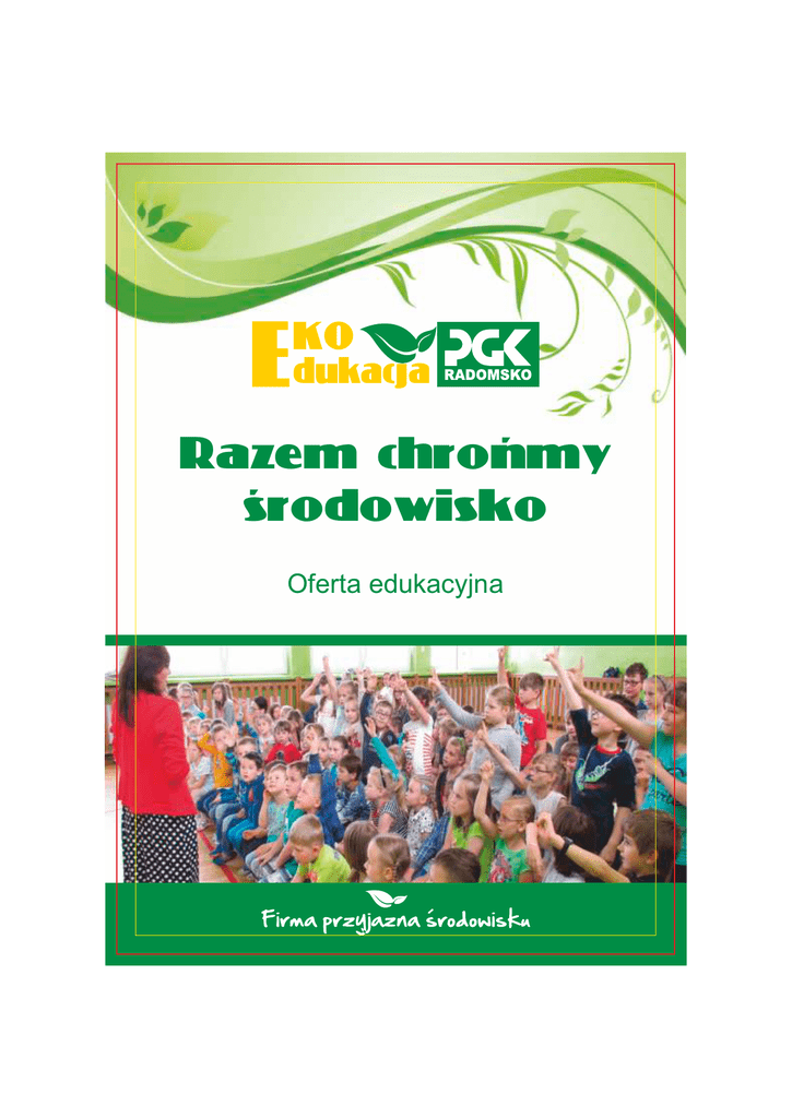 E KO dukacja Razem chrońmy środowisko Oferta edukacyjna WYDAWCA: Przedsiębiorstwo Gospodarki Komunalnej Sp. z o.o. ul. Stara Droga 85 97-500 Radomsko tel. 44 683 06 30 fax 44 683 43 77 e-mail: [email protected] www.pgk-radomsko.pl Opracowanie: Magdalena Jurek Aneta Niedźwiecka Karolina Parzuchowska Urszula Rylik Zdjęcia: Archiwum PGK Sp. z o.o. Skład i druk: www.alt-media.com.pl WYDANIE I RADOMSKO 2015 Zakład Oczyszczania Miasta ul. Stara Droga 85 tel. 44 683 06 30 tel. 44 683 42 26 [email protected] Zakład Wodociągów i Kanalizacji ul. Krzywa 12 tel. 44 682 47 37 tel. 44 682 46 44 tel. 44 682 48 08 [email protected] Zakład Ciepłowniczy ul. Wyszyńskiego 151 tel. 44 683 77 02 tel. 44 683 49 18 fax 44 685 12 70 [email protected] Zakład Unieszkodliwiania Odpadów Komunalnych ul. Jeżynowa 40 Płoszów gm. Radomsko tel./fax 44 682 68 56 [email protected] Zakład Transportu ul. Stara Droga 85 tel. 44 683 06 30 tel. 44 683 75 09 [email protected] Dział Ochrony Środowiska Laboratorium PGK ul. Spacerowa 120 tel. 44 683 25 33 [email protected] Oczyszczalnia Ścieków ul. Spacerowa 120 tel. 44 683 25 33 fax 44 683 50 38 [email protected] Schronisko dla Bezdomnych Zwierząt ul. Spacerowa 118 tel. kom. 501 272 431 [email protected] EKO dukacja Oferta edukacyjna PGK w Radomsku Przedsiębiorstwo Gospodarki Komunalnej Sp. z o.o. w Radomsku, jako rma przyjazna środowisku, dostrzega potrzebę kształtowania właściwych postaw mieszkańców miasta względem ochrony środowiska naturalnego i od wielu lat prowadzi działalność edukacyjną w tym zakresie. Spotykamy się z dużym uznaniem i ilość szkół, z którymi nawiązujemy współpracę rośnie z roku na rok. Zamierzamy zintensykować swoje dotychczasowe działania związane z tym obszarem. Proponowane przez nas formy przekazu to głównie prezentacja połączona z prelekcją oraz część warsztatowo konkursowa. Nasza oferta dostosowana jest do konkretnej grupy wiekowej. Dodatkową pomocą podczas spotkań są materiały edukacyjne rozpowszechniane w formie kolorowych ulotek, obrazujących jak prawidłowo postępować, aby chronić środowisko. Chętnie odpowiadamy na zaproszenia szkół, celem zorganizowania pogadanek o tematyce ekologicznej, czynnie uczestniczymy w szkolnych obchodach świąt ekologicznych, np. „Dzień ziemi”, „Dzień wody” itp. Staramy się, aby spotkania prowadzone przez naszych pracowników, oprócz przekazywanej wiedzy gwarantowały również dobrą zabawę (szczególnie w grupach najmłodszych). Zachęcamy Państwa do współpracy. 3 EKO dukacja Oferta edukacyjna PGK w Radomsku PRZYJDŹ , ZOBACZ I NAUCZ SIĘ CZEGOŚ NOWEGO Wycieczki szkolne na terenie zakładów PGK są zawsze mile widziane i budzą duże zainteresowanie. Najlepsza wiedza, to bezpośredni kontakt z tematyką np. zagospodarowania odpadów w Zakładzie Unieszkodliwiania Odpadów Komunalnych, jakością ścieków dopływających do oczyszczalni i poznaniem metod ich oczyszczania. Dla wielu spośród odwiedzających Zakład Unieszkodliwiania Odpadów Komunalnych, Oczyszczalnię Ścieków, Zakład Wodociągów i Kanalizacji, czy Zakład Ciepłowniczy, jest to jedyna okazja w życiu do przyjrzenia się pracy tego typu instalacji. Terminy wycieczek należy ustalać telefonicznie lub pisemnie, po wcześniejszym zapoznaniu się z regulaminem zwiedzania, dostępnym na naszej stronie internetowej www.pgk-radomsko.pl, w zakładce "strefa klienta - druki do pobrania". 4 EKO dukacja Oferta edukacyjna PGK w Radomsku CHĘTNIE WAS ODWIEDZIMY PGK Sp. z o. o., po wcześniejszym zaproszeniu przez placówki oświatowe, każdorazowo aktywnie włącza się w obchody świąt ekologicznych, jak np. "Dzień Ziemi", Dzień Wody" itp. Tematyka i forma spotkania jest uzgadniana z osobami prowadzącymi projekt. Forma przekazu jest zawsze dostosowywana do wieku odbiorców, a w grupach najmłodszych uczymy również przez zabawę. Aktywni słuchacze otrzymują zawsze dodatkowy upominek w postaci rmowych gadżetów. 5 EKO dukacja Oferta edukacyjna PGK w Radomsku OFERTA DLA SZKÓŁ PODSTAWOWYCH I PRZEDSZKOLI Lp. Tematyka prelekcji 1. Gospodarowanie odpadami Zakres informacji denicja odpadów, rozkład odpadów w czasie właściwy sposób gromadzenia odpadów zasady i celowość prowadzenia selektywnej zbiórki odpadów „u źródła” odbiór odpadów i ich transport do miejsc zagospodarowania przedstawienie instalacji sortowni, kompostowni i składowiska wchodzących w skład Zakładu Unieszkodliwiania Odpadów Komunalnych w Płoszowie drugie życie odpadów inspiracje plastyczne i techniczne z wykorzystujące odpady opakowaniowe 2. Baterie i akumulatory rodzaje baterii i akumulatorów wpływ niewłaściwego zagospodarowania tych odpadów na środowisko oferta zbiórki zużytych baterii dla szkół oraz mieszkańców 3. Aluminium dane o ilości zużycia i rodzajach wyrobów z aluminium dlaczego odpad należy selektywnie gromadzić warunki selektywnego gromadzenia opakowań aluminiowych drugie życie puszki w pracach plastycznych i technicznych 4. Zużyty sprzęt korzyści dla środowiska wynikające z naprawy starego sprzętu 5. Lasy to nie miejsca pozbywania się odpadów budowa lasu, mieszkańcy lasu zagrożenia dla środowiska wynikające z pozostawienia odpadów w lesie właściwe zagospodarowanie odpadów 6. Ochrona powietrza i klimatu powietrze i jego skład zanieczyszczenia powietrza i źródła ich emisji wpływ człowieka na stan atmosfery oraz klimat praktyczne wskazówki jak ograniczać emisję zanieczyszczeń do atmosfery oraz chronić klimat 7. Woda –źródło życia 8. Oczyszczanie ścieków 9. 6 denicja elektroodpadów dane na temat ilości wytwarzanego zużytego sprzętu elektrycznego i elektronicznego szkodliwy wpływ niewłaściwego zagospodarowania odpadów na środowisko informacja o tym jak można pozbyć się zużytego sprzętu - organizacja odbioru elektroodpadów przez PGK Sp. z o.o dlaczego warto przemyśleć zakup nowego sprzętu elektr