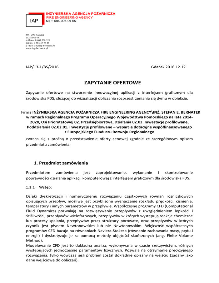 zapytanie ofertowe - iap inżynierska agencja pożarnicza