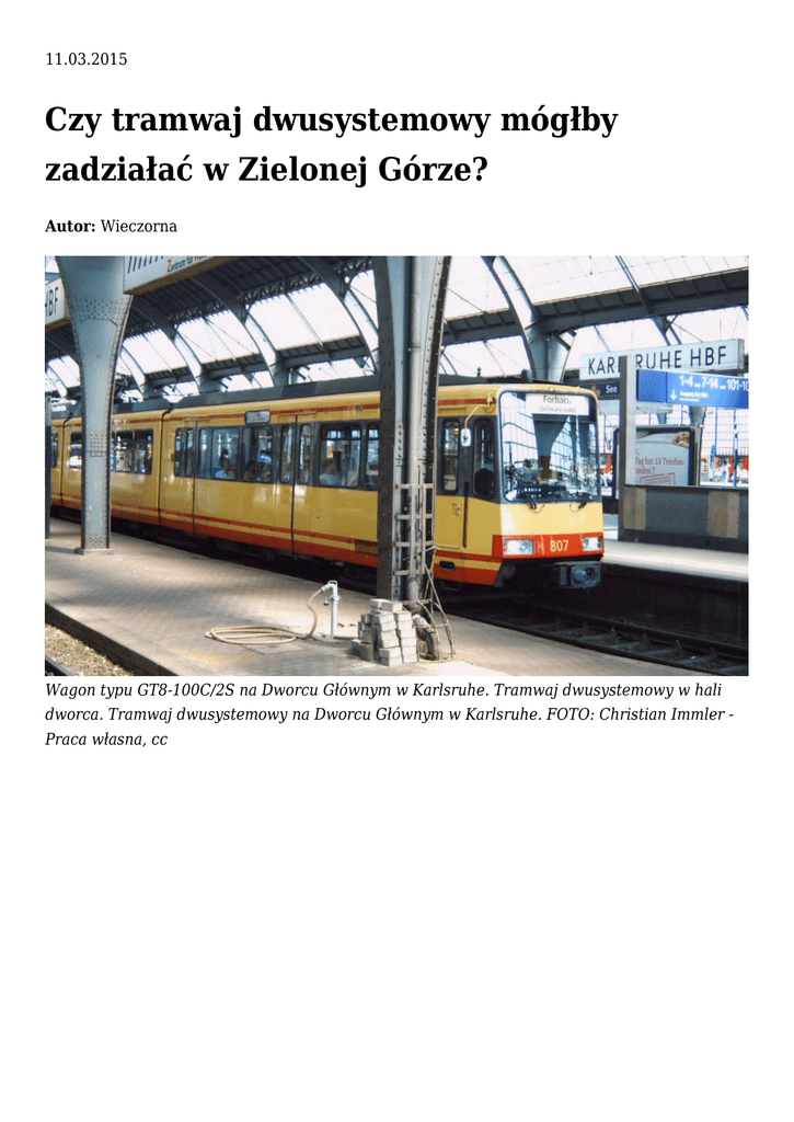 dworca. Tramwaj dwusystemowy na Dworcu Głównym w Karlsruhe. FOTO: Christian Immler Praca własna, cc