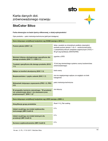 Karta danych dot. zrównoważonego rozwoju StoColor Silco
