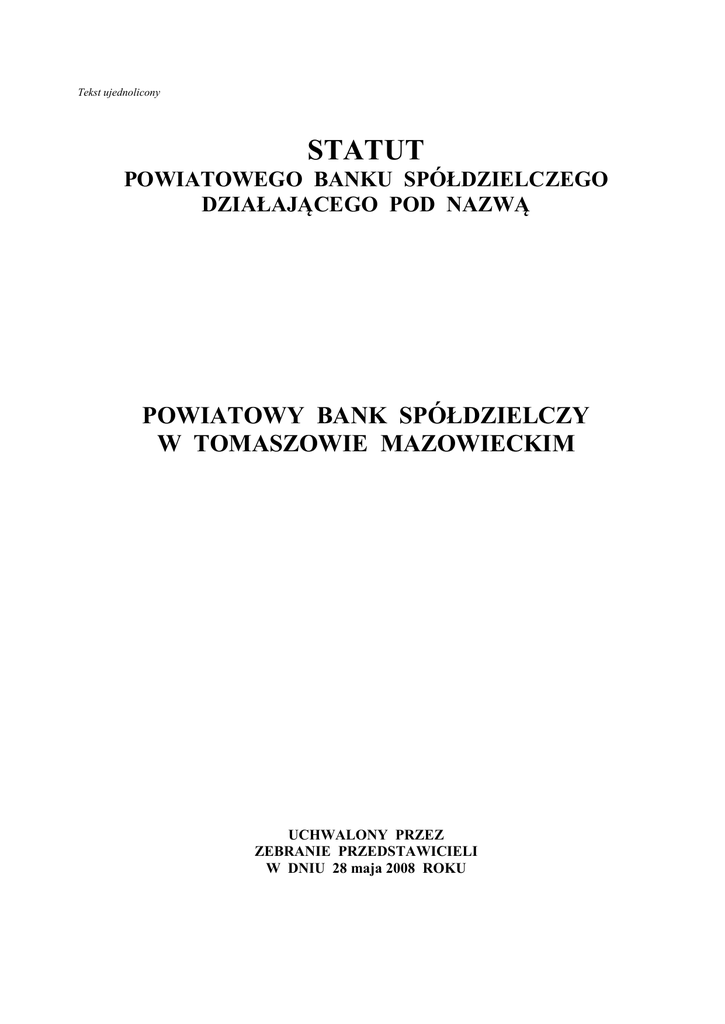 Statut - Powiatowy Bank Spółdzielczy w Tomaszowie
