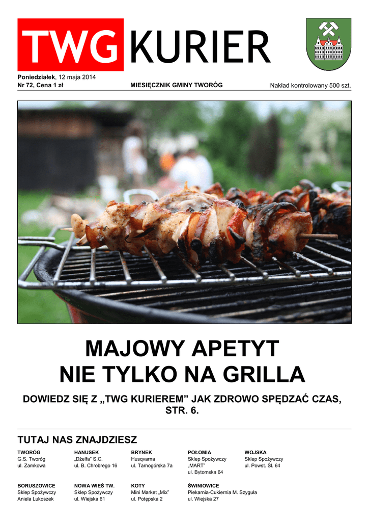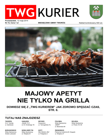 TWG KURIER Poniedziałek, 12 maja 2014 Nr 72, Cena 1 zł MIESIĘCZNIK GMINY TWORÓG Nakład kontrolowany 500 szt. MAJOWY APETYT NIE TYLKO NA GRILLA DOWIEDZ SIĘ Z „TWG KURIEREM” JAK ZDROWO SPĘDZAĆ CZAS, STR. 6. TUTAJ NAS ZNAJDZIESZ TWORÓG G.S. Tworóg ul. Zamkowa HANUSEK „Dżelfa” S.C. ul. B. Chrobrego 16 BRYNEK Husqvarna ul. Tarnogórska 7a POŁOMIA Sklep Spożywczy „MART” ul. Bytomska 64 WOJSKA Sklep Spożywczy ul. Powst. Śl. 64 BORUSZOWICE Sklep Spożywczy Aniela Lukoszek NOWA WIEŚ TW. Sklep Spożywczy ul. Wiejska 61 KOTY Mini Market „Mix” ul. Potępska 2 ŚWINIOWICE Piekarnia-Cukiernia M. Szyguła ul. Wiejska 27 TWG KURIER WSTĘPNIAK OD REDAKCJI SPIS TREŚCI DRODZY MIESZKAŃCY, TABLICA………………………………………………….str.3 SESJA…………………………………………………….str.4 – Zamiana nieruchomości – Nowy witacz już gotowy POD LUPĄ……………………………………………….str.5 – Wyloguj się z systemu! „Baranówka czeka” HOBBYSTA…..……………………………………….…str.6 – Marsz po zdrowie, czyli spacer nordycki KULTURALNIE………………………………….………str.7 – Hrabiną być – Organy w Kotach będą jak nowe – Dzień Papieski w Boruszowicach – Wspominając Papieża – Komu bije dzwon? – Na byzuchu NA BIEŻĄCO………………………………….……….str.11 – Jestem Ślązakiem – Pasowanie na czytelnika szkolnej biblioteki – „English na szóstkę” – Sukces w konkursie matematycznym – Zamień „TWG Kuriera” na kubek – Z okazji urodzin – Na sportowo, bo to zdrowo – Boruszowice na podium – Rowerem po zwycięstwo – Graj w zielone – Bo sosny są wyjątkowe – Przegląd Filmów Ekologicznych – Uwaga – talent! – Program regionalny „Tworóg – moja mała ojczyzna” w Gminnym Przedszkolu w Tworogu w majowym wydaniu „TWG Kuriera” nie zabraknie propozycji spędzania wolnego czasu. W „Hobbyście” zachęcamy was do marszu nordyckiego z mieszkankami Kotów, które przekonują, że ten sport to gwarancja dobrej kondycji. Z kolei „Pod lupę” bierzemy ranczo w Nowej Wsi Tworoskiej, miejsce dla spragnionych spokoju, przyrody i lubiących aktywny tryb życia. Relacjonujemy także najważniejsze wydarzenia z życia rady gminy. Tym razem przysłuchiwaliśmy się posiedzeniu komisji wspólnej, na której dyskutowano o losie pewnych działek. W dziale „Kulturalnie” piszemy o historii naszej gminy. Wspominamy hrabinę Marie Karoline von Donnersmarck oraz zabytkowe dzwony z kościołów w Tworogu i Kotach. Obie historie łączy II wojna światowa, której dramatyczny przebieg napisał nowy rozdział w życiu hrabiny i wpłynął na losy zabytków. Zapraszamy do lektury! www.twg-kurier.pl [email protected] REDAKCJA redaktor naczelna: Marta Kobędza-Krain dziennikarze: Grażyna Chmiel Agata Frączek Ewa Jaruszowic KREACJA Łukasz Krain MECENAT Grażyna Chmiel – dyrektor Gminnego Ośrodka Kultury GOŚCINNIE Teresa Adamczyk, Karolina Gatys, Eleonora Krywalska, Róża Neumann, Hanna Pawełczyk, Bożena Szeliga, Klaudiusz Wieder WYDAWCA Gminny Ośrodek Kultury w Tworogu, ul. Zamkowa 1, 42-690 Tworóg, tel. (32) 285 74 92 DRUK Foto&druk Damian Zymela Redakcja zastrzega sobie prawo do redagowania i skracania tekstów przesyłanych do druku. 2 TWG KURIER TABLICA Masz pytania lub pomysł na nowy temat? KONCERT ROBERTA KASPRZYCKIEGO Napisz do nas: 20 czerwca o godz. 19.00 w muzycznej kawiarni na terenie rancza „Baranówka” w Nowej Wsi Tworoskiej odbędzie się koncert jednego z najbardziej znanych reprezentantów piosenki autorskiej – Roberta Kasprzyckiego. [email protected] O G Ł O S Z E N I E POTRZEBNA POMOC DOMOWA Podobno, to właśnie koncerty oddają prawdziwą moc tego artysty. W kontakcie z publicznością, Kasprzycki najpełniej emanuje niezwykłą charyzmą. Niespożyta energia, feeling i poczucie humoru sprawiają, że kontakt z widzami jest natychmiastowy i długofalowy, kto bowiem był raz na koncercie Kasprzyckiego niemal zawsze wraca. Poszukuję pani do pomocy w domu w Boruszowicach. Okazjonalnie do opieki nad dziewczynką 3-letnią. Mówiąc krótko czerwcowy koncert będzie muzyczną pigułą w poetyckim, folkowym i kabaretowym klimacie. Znajdzie się także miejsce na premierowe piosenki, które niedługo ujrzą światło dzienne na nowej płycie. Proszę o kontakt na numer 662 246 877 Osoby zainteresowane koncertem proszone są o kontakt mailowy z organizatorem: lub elektronicznie na [email protected] [email protected] . cena biletu: 50 zł 3 TWG KURIER SESJA Nie ma więc podstaw do kwestionowania wyceny. Według rzeczoznawcy nieruchomości gminne mają wartość 333 800,00 zł, a Nadleśnictwa 334 200,00 zł. ZAMIANA NIERUCHOMOŚCI Na poprzedniej komisji rozwoju zaopiniowano negatywnie projekt uchwały w sprawie wyrażenia zgody na zamianę nieruchomości pomiędzy Gminą Tworóg a Państwowym Gospodarstwem Leśnym Lasy Państwowe Nadleśnictwo Brynek. Swoje stanowisko komisja uzasadniła dużymi dysproporcjami w powierzchni terenów podlegających wymianie. Na poprzedniej sesji Rady Gminy, 31 marca, temat wycofano z obrad. Do sprawy powrócono 28 kwietnia, na wspólnym posiedzeniu komisji. Wiele wątpliwości zostało wówczas rozwianych. Rozmowy na temat zamiany trwają wiele lat, w tej chwili gmina ma realną szansę na uregulowanie kwestii prawnej działek, które przede wszystkim mają służyć mieszkańcom. Długie dyskusje i wydanie opinii w tej sprawie nie było łatwe. Ostatecznie 10 radnych głosowało za pozytywnym zaopiniowaniem projektu, 2 było przeciwnych, 3 wstrzymało się od głosu. Sesja Rady Gminy, na której odbędzie się głosowanie w tej sprawie zaplanowano na 12 maja. NOWY WITACZ JUŻ GOTOWY Ze strony Nadleśnictwa Brynek wymianie mają podlegać działki w centrum Tworoga, które z punktu widzenia działalności statutowej są Nadleśnictwu zbędne. Należy do nich
