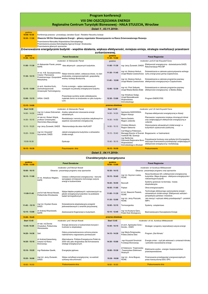 Program konferencji VIII DNI OSZCZĘDZANIA ENERGII