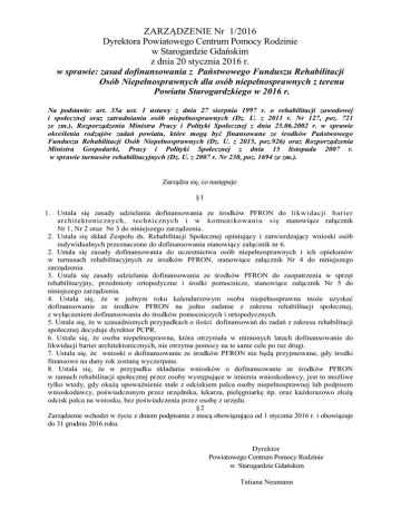 ZARZĄDZENIE Nr 1/2016 Dyrektora Powiatowego Centrum Pomocy
