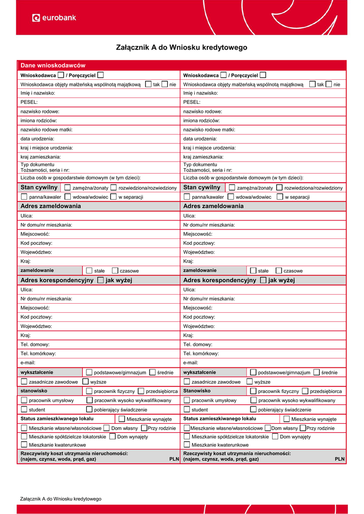 Załącznik A do Wniosku kredytowego