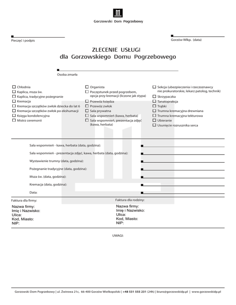 Zlecenie usługi dla Gorzowskiego Domu Pogrzebowego