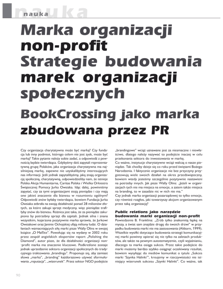Marka organizacji non-profit Strategie budowania marek organizacji