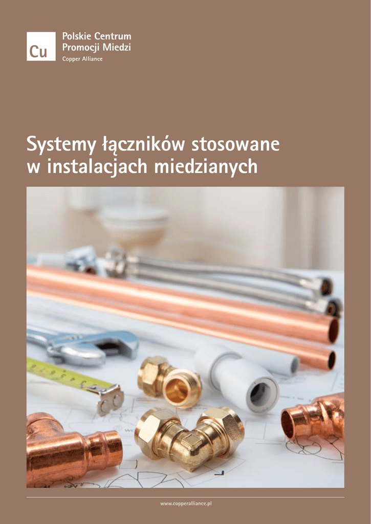 Systemy łączników stosowane w instalacjach miedzianych strona: www.copperalliance.pl 1/24 Systemy łączników stosowane w instalacjach miedzianych www.copperalliance.pl Praca pod redakcja PCPM Wydanie 2014 Polskie Centrum Promocji Miedzi ul. Św. Mikołaja 8-11 (p. 408) 50-125 Wrocław e-mail: [email protected] tel.: (+48) 71 78 12 502 fax: (+48) 71 78 12 504 www.copperalliance.pl Spis treści 1.Wstęp strona: 4 2.Wymagania dla łączników strona: 4 2.1 Wymagania ogólne strona: 4 2.2 Wymagania materiałowe strona: 5 2.3 Stan powierzchni strona: 6 2.4 Znakowanie strona: 6 strona: 6 3.1 Łączniki metryczne strona: 6 3.2 Łączniki calowe ACR strona: 8 3.3 Łączniki do gazów medycznych strona: 9 strona: 9 z miedzi i stopów miedzi 3.Łączniki do lutowania kapilarnego: 4.Systemy łączników zaciskowych 4.1 Łączniki skręcane strona: 10 4.2 Łączniki zaprasowywane strona: 12 4.2.1Łącznik z obustronnym zaciskiem wokół uszczelnienia strona: 12 4.2.2 Łącznik z jednostronnym zaciskiem wokół uszczelnienia strona: 14 4.3 Łączniki samozaciskowe strona: 18 strona: 18 4.4 Łączniki z końcówkami gwintowanymi 4.5 Łączniki zaprasowywane do łączenia instalacji z rury miedzianej cienkościennej strona: 19 5.Zasady stosowania łączników w instalacjach strona: 20 6. Pakowanie strona: 21 7. Przechowywanie strona: 21 8. Transport strona: 21 z miedzi Systemy łączników stosowane w instalacjach miedzianych strona: www.copperalliance.pl 4/24 1. Wstęp Broszura poświęcona jest technologii łączenia elementów instalacji z miedzi z wykorzystaniem łączników wykonanych z miedzi i stopów miedzi. Opisane zostaną różne techniki łączenia rur począwszy od lutowania kapilarnego, zaprasowywania, samozaciskania oraz skręcania. Omówione zostaną wymagania i przepisy, które muszą spełnić producenci tych elementów instalacji oraz możliwości zastosowań poszczególnych rodzajów łączników do różnych typów instalacji. Przedstawione zostaną także zalety stosowania poszczególnych systemów łączników. Broszura przeznaczona jest głównie do projektantów, inspektorów nadzoru budowlanego oraz instalatorów. 2. Wymagania dla łączników z miedzi i stopów miedzi 2.1 Wymagania ogólne Do łączenia rur miedzianych o średnicach zewnętrznych od 6 do 159 mm służą dwa rodzaje łączników: − łączniki do lutowania kapilarnego, − łączniki zaciskowe. Łączniki zaciskowe dzielą się w zależności od budowy na łączniki: − skręcane (z nakrętką) − zaprasowywane − samozaciskowe Do łączenia rur o średnicach powyżej 108 mm (do 159 mm włącznie) zaleca się stosować łączniki z krótszymi kielichami, przeznaczone wyłącznie do lutowania twardego. Produkowane są także łączniki przejściowe z końcówkami różnego typu, w tym także gwintowanymi, służące do łączenia rur miedzianych z rurami z innych materiałów: stalowymi i z tworzyw sztucznych oraz armaturą i innymi elementami wyposażenia instalacji wodnych i gazowych na paliwa gazowe. Wymagania dla łączników do instalacji z rur miedzianych zawarte są w normie PN-EN 1254, której cztery części dotyczą łączników do rur miedzianych: − część 1- łączniki do lutowania kapilarnego (do 108 mm), − część 2 - łączniki zaciskowe skręcane, − część 3 - łączniki do rur z tworzyw sztucznych z końcówkami zaciskowymi, − część 4 - łączniki z końcówkami gwintowanymi, − część 5 - łączniki z krótszymi (niż w części 1 normy) kielichami, przeznaczonymi do lutowania twardego do średnicy 159 mm. Norma ta nie określa wymagań dla łączników zaprasowywanych i samozaciskowych. Określają je inne przepisy, rozporządzenia oraz aprobaty techniczne ITB. Wszystkie typy łączników muszą spełniać wymagania gwarantujące trwałość i szczelność połączeń z rurami. Część wymagań jest wspólna dla różnych typów łączników. Należą do nich wymagania materiałowe, jakości powierzchni i oznakowanie (cechowanie). Polskie Centrum Promocji Miedzi • ul. Św. Mikołaja 8-11, 50-125 Wrocław • tel.: 71 78 12 502, fax: 71 78 12 504 • [email protected] Systemy łączników stosowane w instalacjach miedzianych strona: www.copperalliance.pl 5/24 Tablica 2.1 Stosowanie złączy lutowanych w instalacjach Rodzaj instalacji wodociągowa ogrzewcza gazowa z łącznikiem miękkie stosować stosować do 110 °C nie stosować kapilarnym twarde stosować od d > 281) stosować do 110 °C stosować bez miękkie stosować2) stosować2) do 110 °C nie stosować łączników twarde stosować od d > 281) 2) stosować2) do 110 °C nie stosować 1) ze względu na możliwość uszkodzeń powierzchni rur przy temperaturze powyżej 400 °C, co może zmniejszyć odporność korozyjną przewodów miedzianych, połączenia przewodów w instalacjach wodociągowych od ≤ 28 mm mogą być wykonywane jedynie przez lutowanie miękkie 2) w przewodach instalacji wodociągowych oraz ogrzewczych wodnych, połączenia rur identycznej średnicy oraz jednostopniowe redukcje mogą być lutowane w kielichach wykonywanych na zimno Połączenia lutowane Tablica 2.2 Stosowanie połączeń rozłącznych w instalacjach Rodzaj instalacji Połączenia rozłączne Łącznik z końcówką gwintowaną bez miękkiego uszczelnienia Łącznik zaciskowy skręcany, z pierścieniem zaciskowym, metalowym1) Łączniki zaciskowe i samozacis-kowe z uszczelnieniem miękkim (elastomery)2) Opaska zaciskowa z uszczelnie-niem miękkim (łącznik prosty nasuwkowy)3) Połączenia kołnierzowe wodociągowa ogrzewcza gazowa gaz ziemny gaz płynny stosować stosować stosować stosować stosować stosować nie stosować nie stosować stosować stosować nie stosować nie stosować stosować stosować nie stosować nie stosować stosować stosować z kołnierzami z brązu stosować z kołnierzami z brązu stosować 1) dla rur w zwojach złączki tylko z tulejką wewnętrzną 2) tylko dla złączek zawsze dostępnych