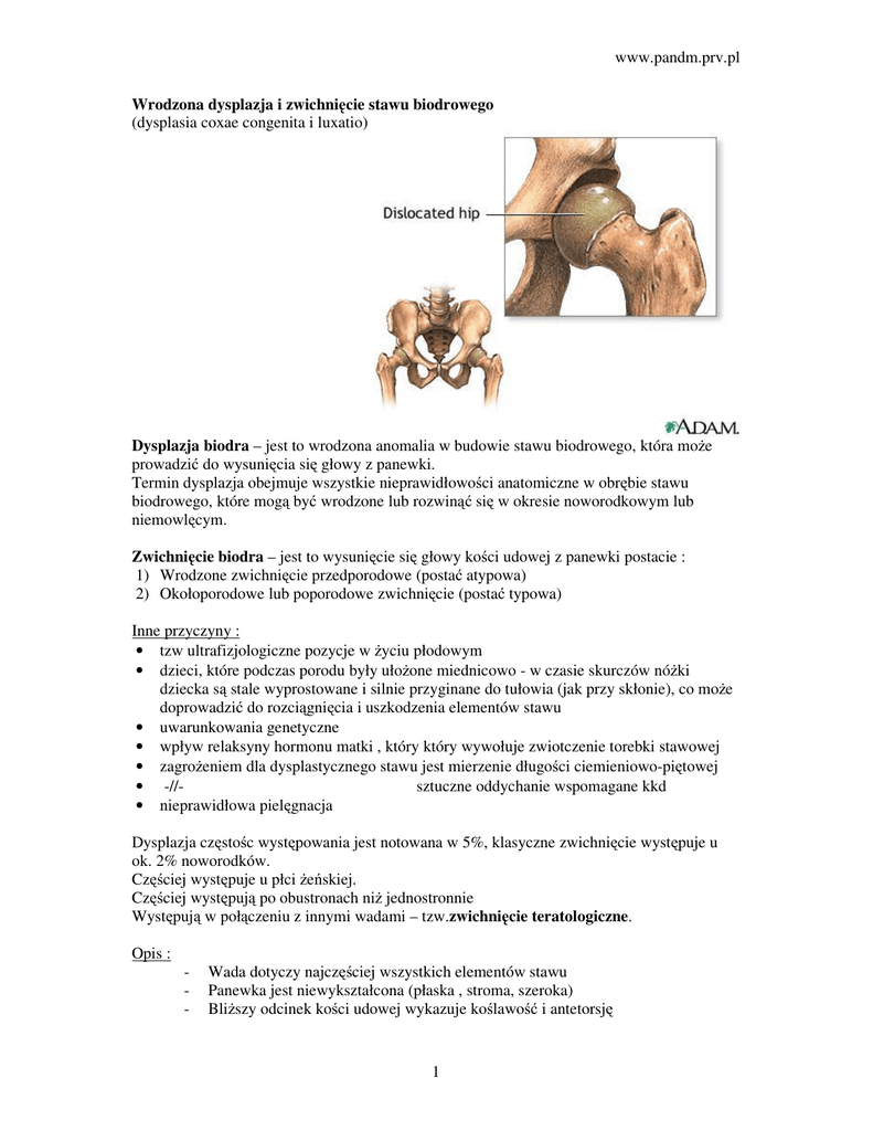 www.pandm.prv.pl 1 Wrodzona dysplazja i zwichnięcie stawu