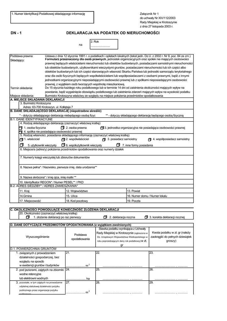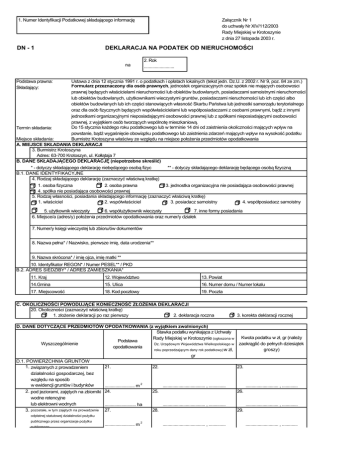 DN - 1 DEKLARACJA NA PODATEK OD NIERUCHOMOŚCI